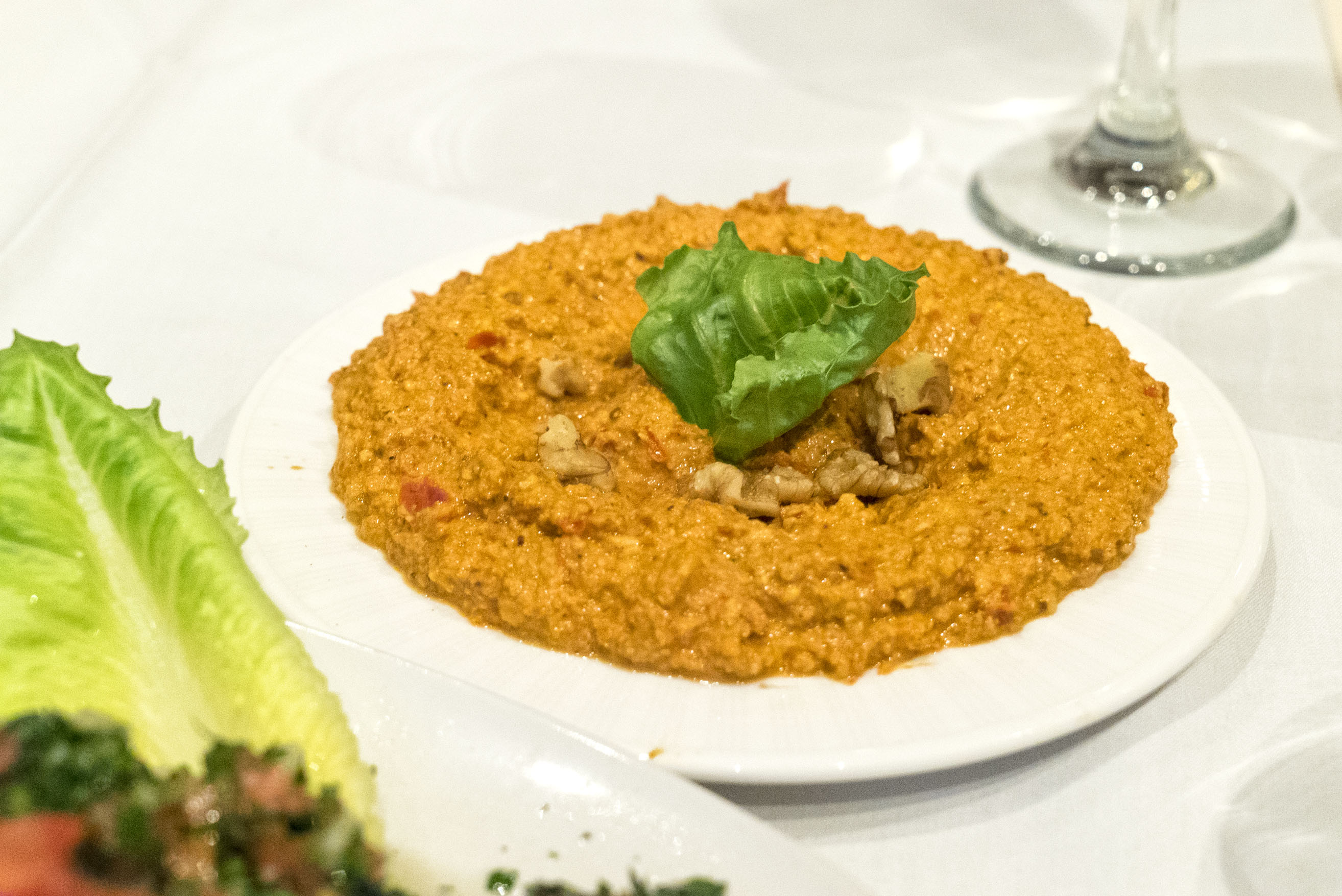 Muhammara might be my new favorite meze. This was made with red pepper, chic peas and walnuts. It was spicy, earthy and filling. It had a bit more of a granular, paste-like texture than the other dips, so it was substantial as a meal in itself: