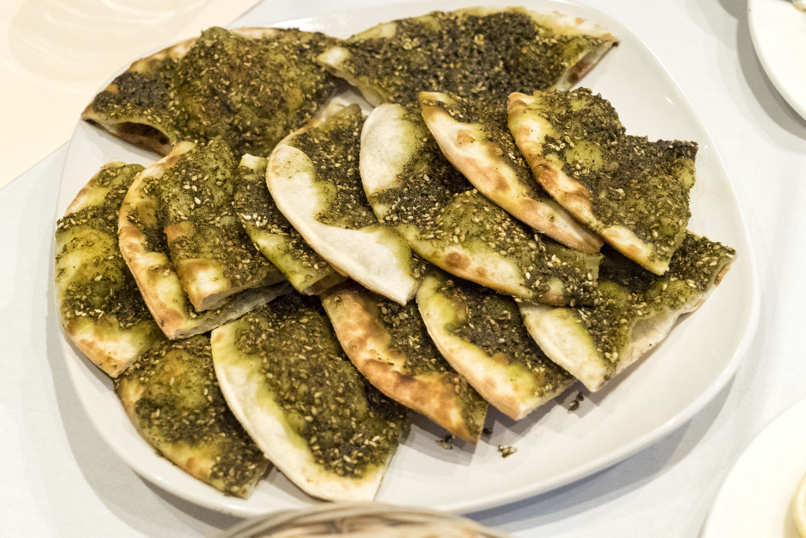 Zataar pies are really unique. Herbs like thyme and sumac jump out and attack your palate with zest. Sesame and olive oil round it out for a perfectly balanced flat bread appetizer. Awesome.