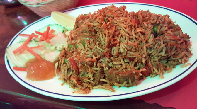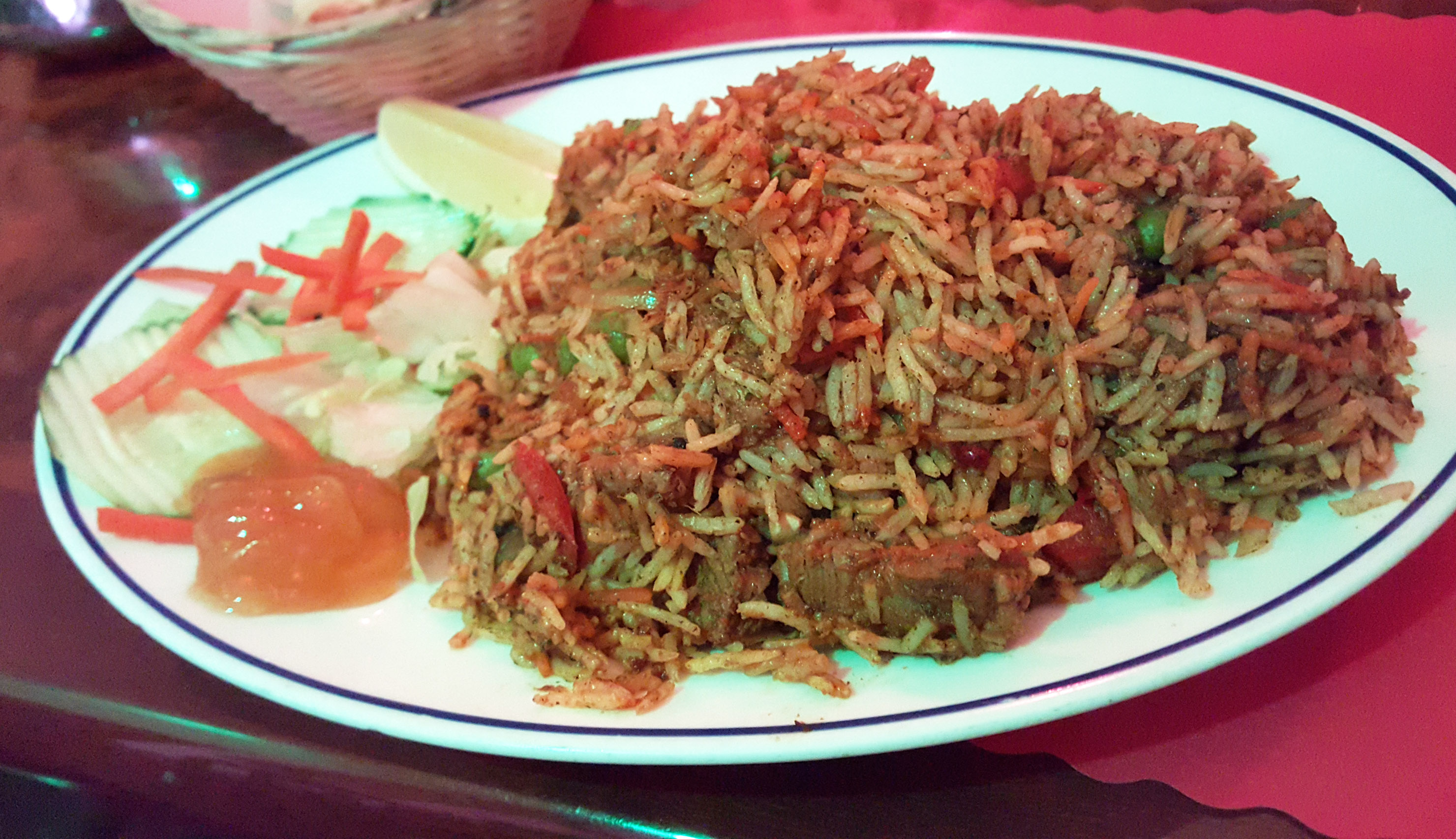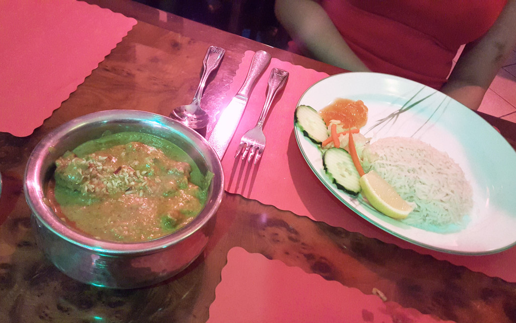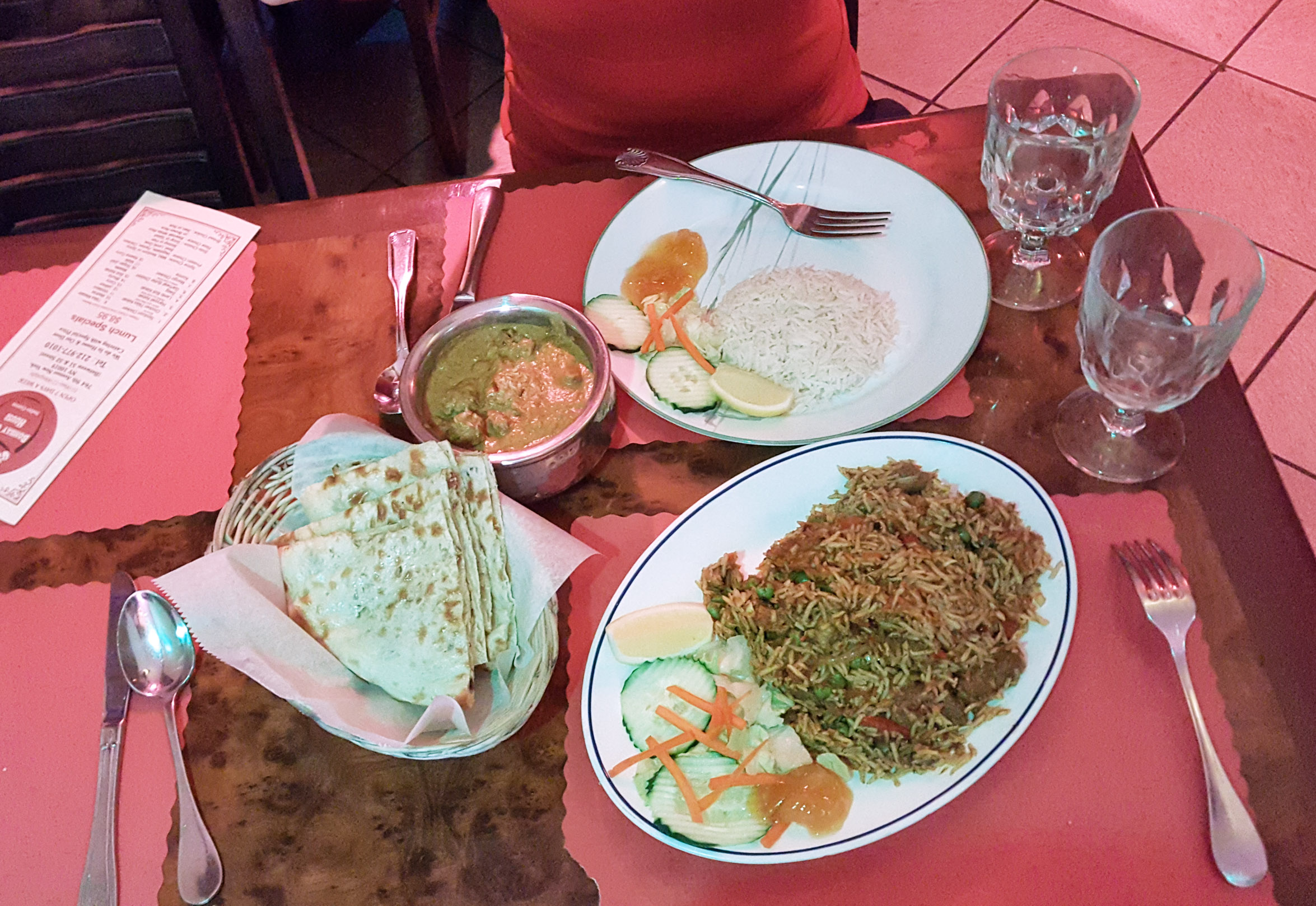 I ate a biryani lamb and spicy rice dish, and my wife had a lamb curry that was mild and creamy.