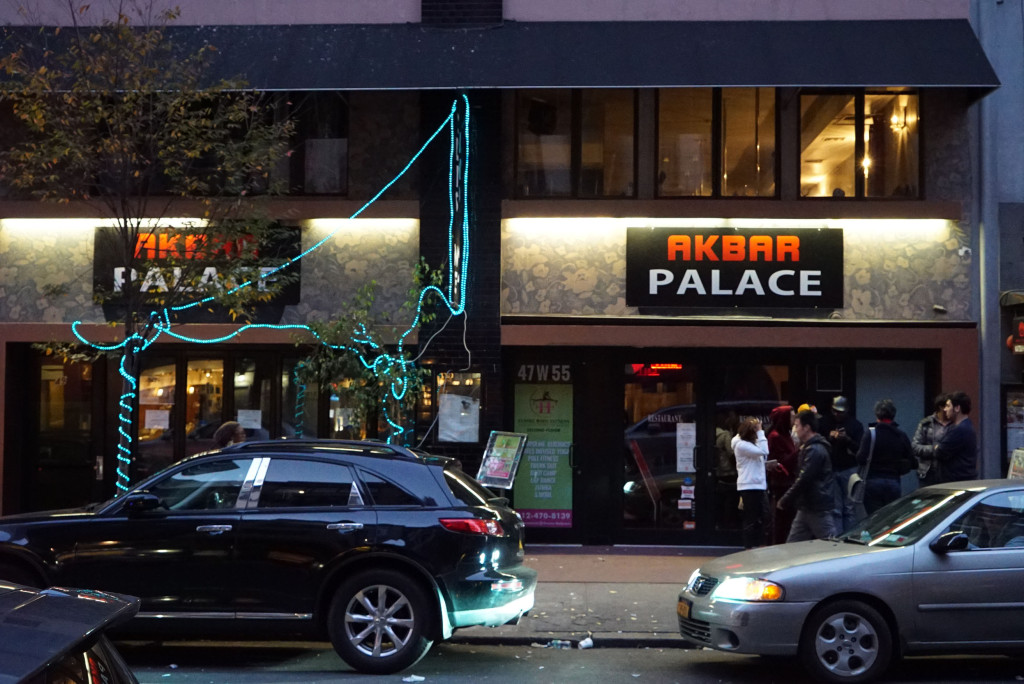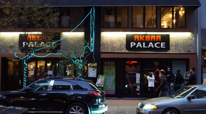 Nestled below a pole dancing and twerking school (I shit you not; you can see the poles in the windows above the right hand side of the entrance in the photo), is Akbar Palace.