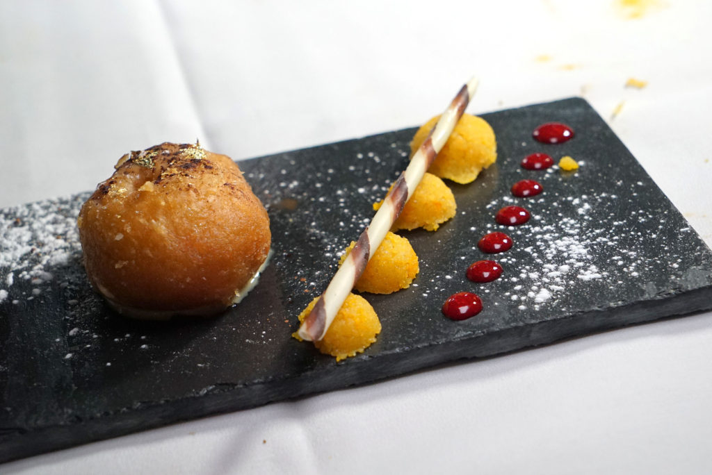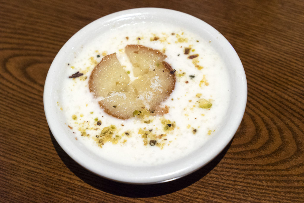 Rice pudding topped with crushed pistachio, and floated with a fried rice flour doughnut that was flavored with honey and coconut. This may sound crazy, but this little bowl of simplicity was my favorite part of the meal! The texture was nice, and it was just the right amount of sweetness in each bite.