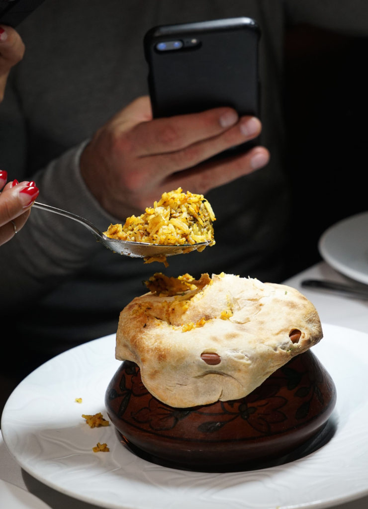 My wife’s second course: pathar beef kebab with bone marrow nihari. This was really interesting and had a pouring element to the dish presentation. I think, however, the ribs were way better.