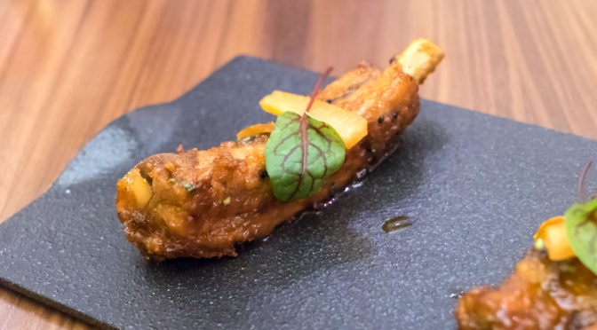 This becoming known for its cross-over cuisine and tapas style bites, so we tried a bunch of those first. First were the grilled tandoori chicken wings.