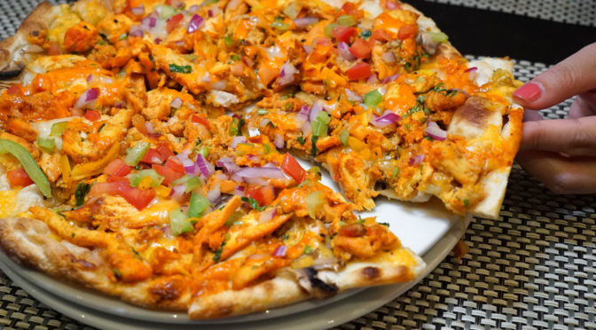 After being amply fed for the snack portion of the meal, we decided to split a chicken tikka pizza for our main course.
