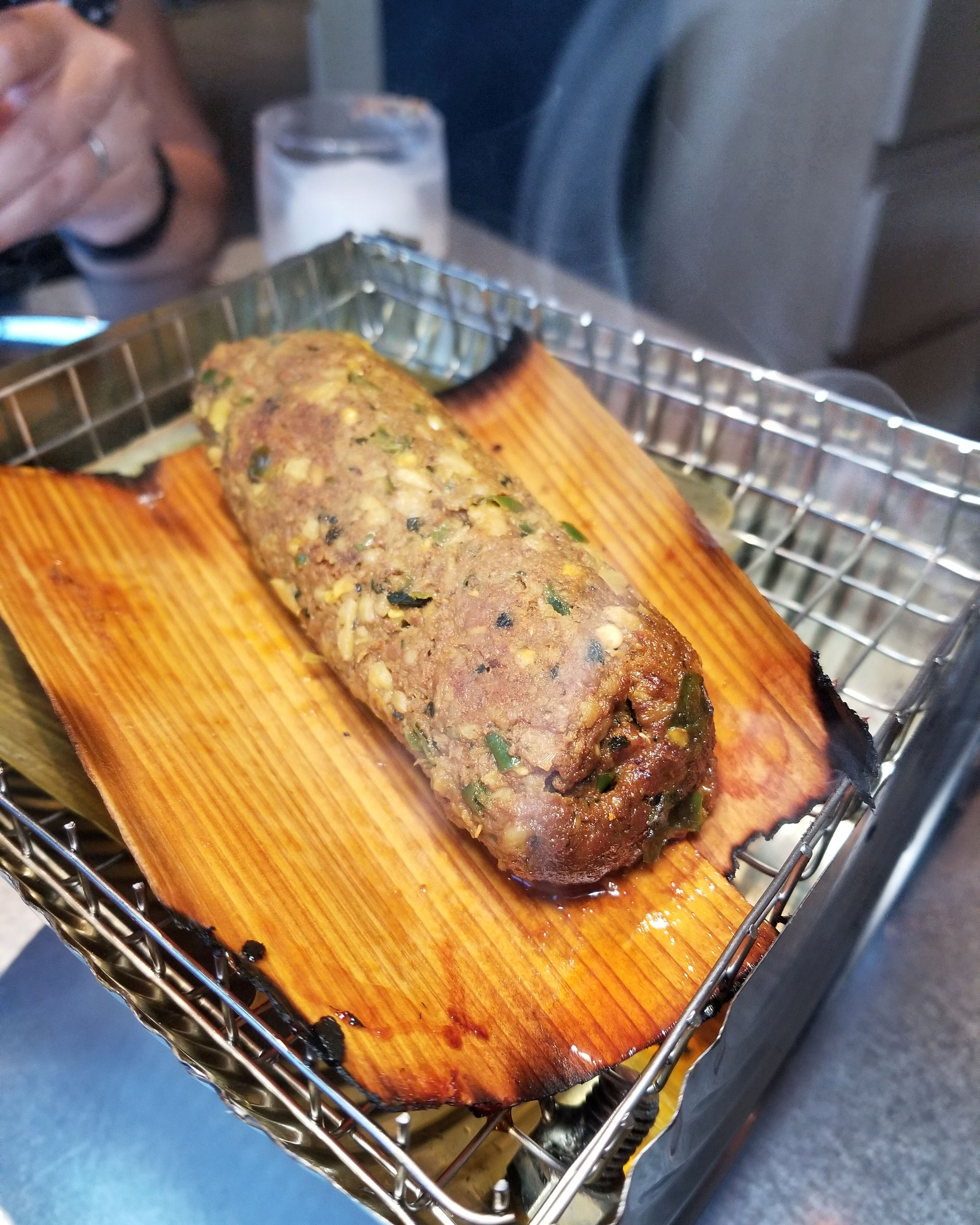 Next up, smoked goat belly. This was cleverly presented in a tiny barrel smoker: