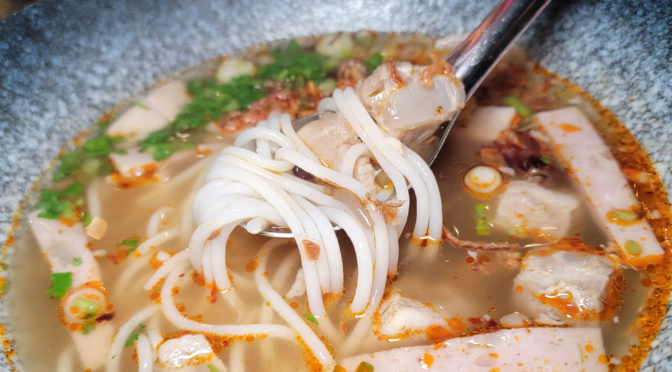 Then, we tried a soup called banh canh, which was almost like a cross between pho flavors and some Chinese noodle soups we used to get up in Hell’s Kitchen. I enjoyed it.