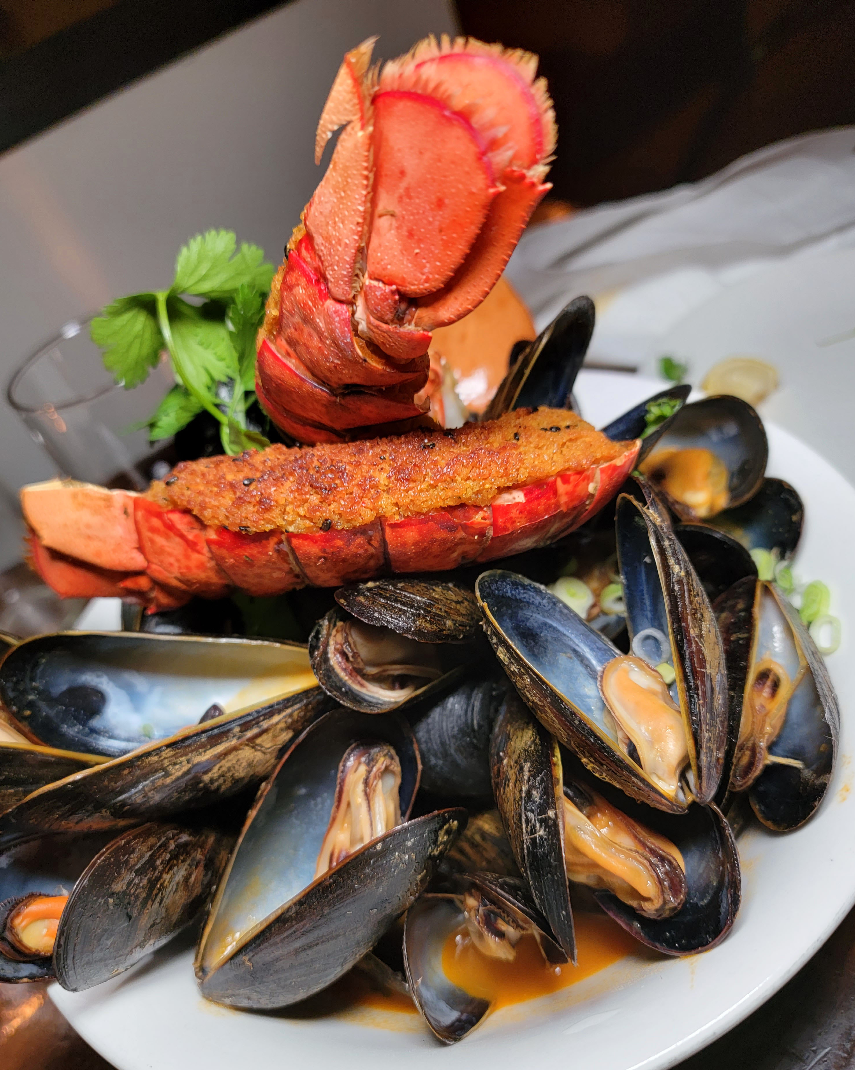 “Luscious Mussels” come with a broiled lobster tail and nori fries. These were probably our favorite dish of the night.