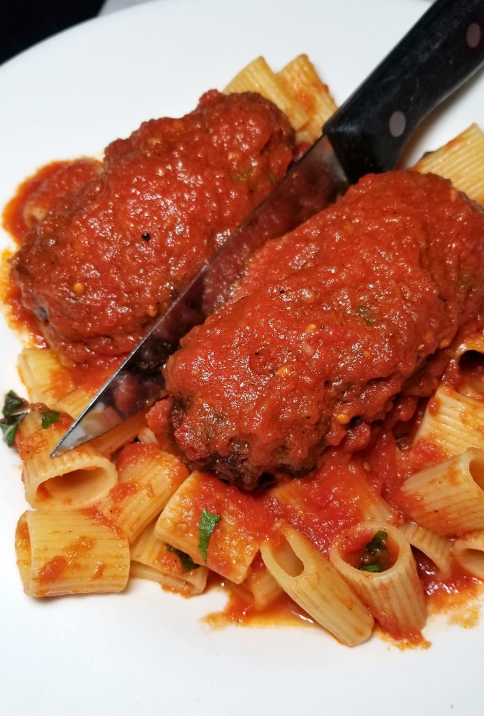 Meatballs are always a tough sell on me, and these veal balls did not meet my standards. But the pasta was awesome, as was the sauce.