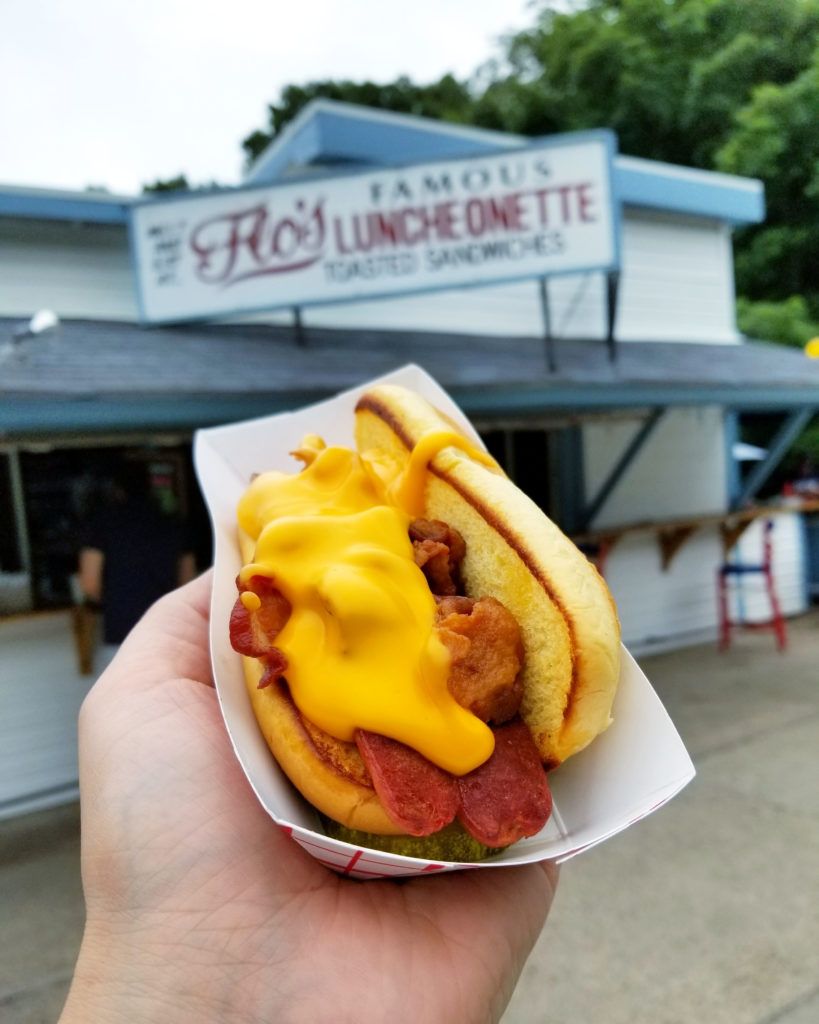 The best thing I had here is Flo’s Puppy Dog, which is a split griddled hot dog with bacon and cheese sauce.