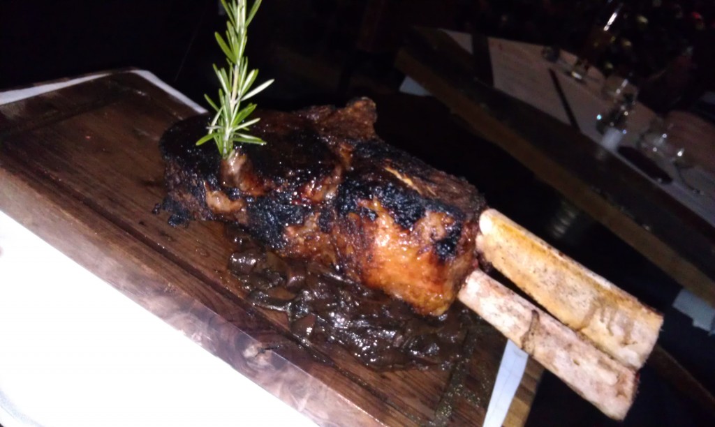 On my first go at QM, I had the bone-in ribeye. I remember being impressed with the size of it, and the huge frenched bone – it was like an axe. My wife had a trio of filets that time. I wasn’t blown away by that, but I do remember liking the ribeye. This time me and the other ass-kicking manimal at the table split a 64oz ribeye for two, and my wife had a seafood tower. The meat was delicious. While it is difficult to ensure even cooking throughout such a huge hunk of meat, Quality Meats did a pretty damn good job. There was only one spot where the meat was a little too under, and not seasoned enough (in the center), and portions of the fat cap were a bit too salty and overcooked. However, if you combined a bite of each, it was a perfect medium. In hindsight it might have been better to go with two 24oz ribeyes (one each), but I was certainly impressed with the flavor. There was a distinct char on the meat, crispy edges, and an abundance of rosemary flavor, which after a while I thought was too much. In fact rosemary seemed to be pretty much the theme of the meal. It was also baked into the table breads. See below – there is a massive sprig of rosemary sticking out of the meat. You will also notice it is chopped up on the bread as well. This isn’t necessarily BAD; I like the aroma and flavor of rosemary, but I DO NOT like the actual needles themselves. They bother me. They also served the steak with a really vinegary mushroom and onion mix. They were black and just way too overpowering; we avoided that shit like the plague.