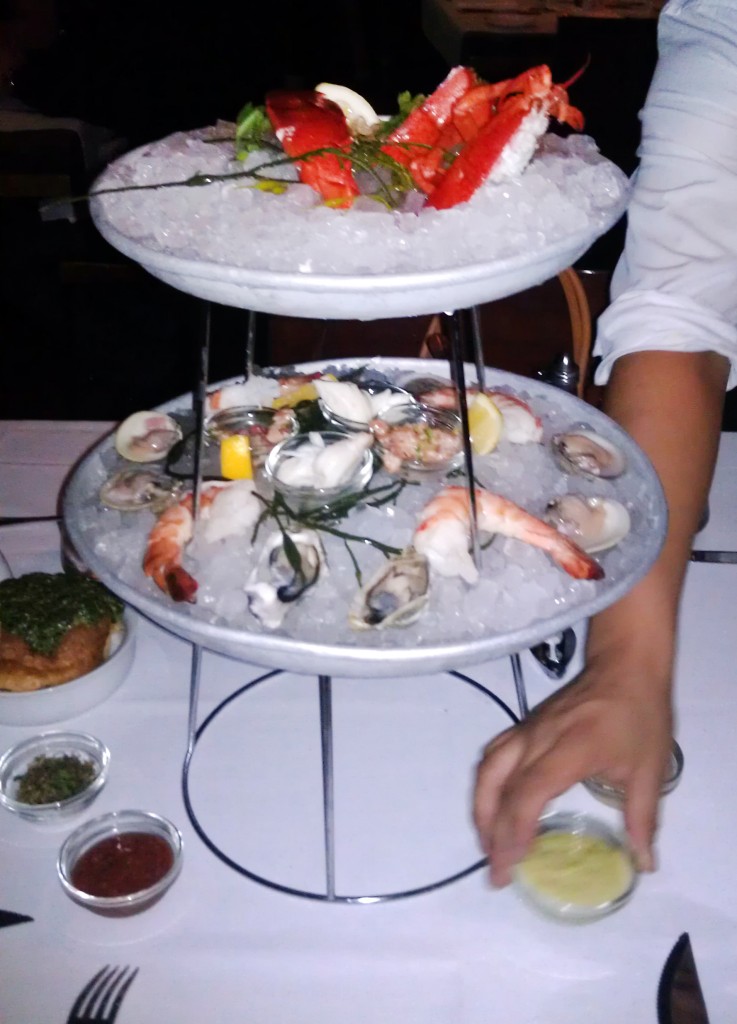 Lobster, halibut, and snapper were listed under entrees in addition to the seafood towers and shellfish on the appetizer menu. The lobster dish, Lobster Newberg, also a signature dish with a unique sauce, has a great story to go along with it (also originated here at the restaurant). They also offered the 5lb special lobster for two, which seemed like a fun thing to order if you are a giant pussy. My wife tried the seafood plateau appetizer as her main course on our third visit and it was great. It came with oysters, shrimp, lump crabmeat, and lobster.