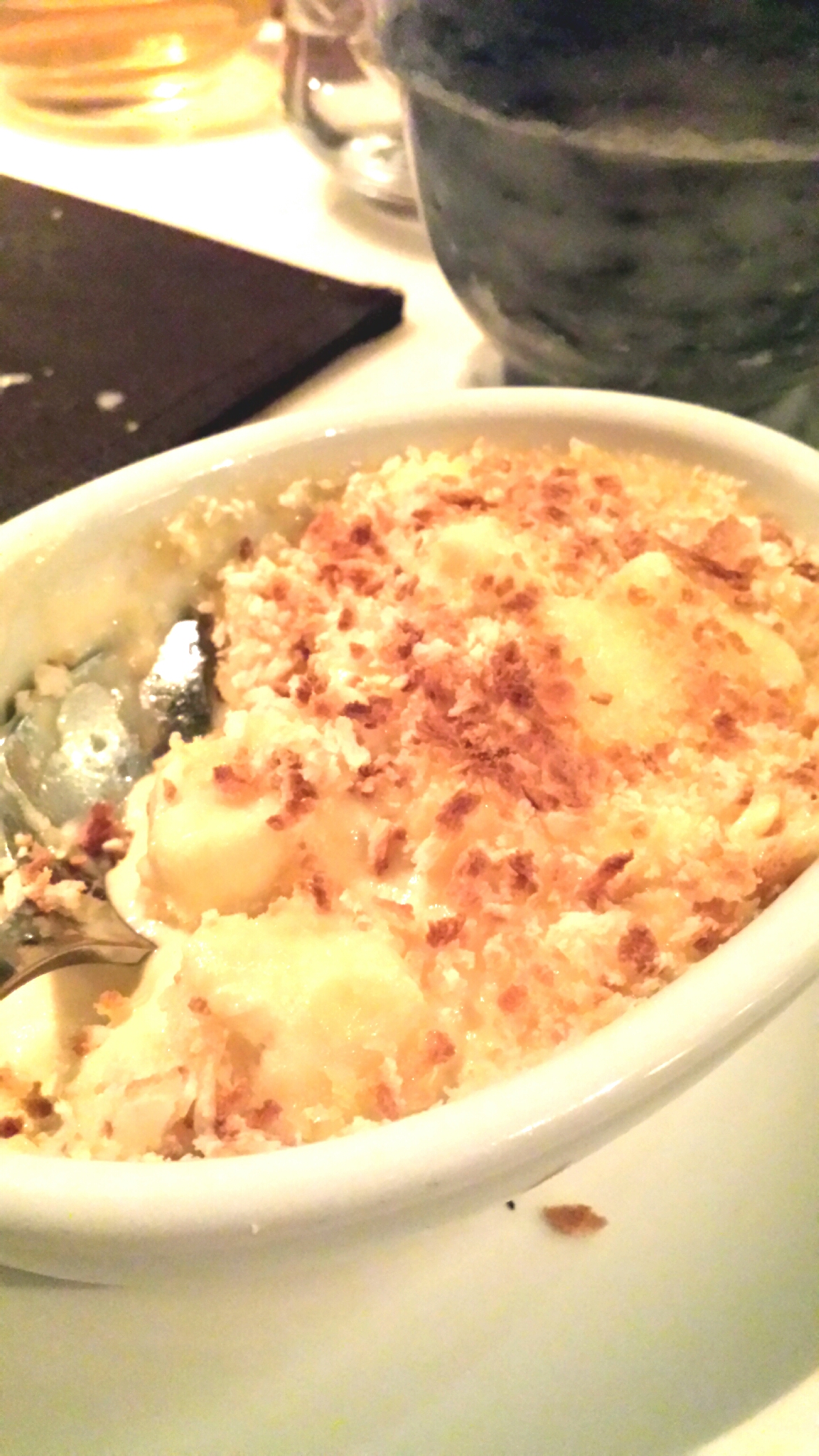 On the side we had some cheese gnocchi (below), creamed spinach, and baby potatoes (on plate above). All were delicious. The creamed spinach was just right; not overwhelmed with salt and just the right amount of creaminess.
