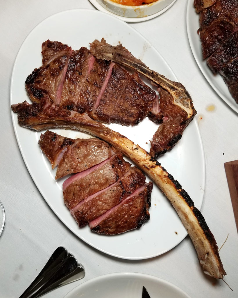 We also tried the porterhouse for two and the tomahawk rib eye for two. Both of these are about 8/10. There was some slight overcooking here, but the flavor was still nice from the 28-days of dry-aging. On average, though, when you take into account the great signature Delmonico cut, strip and filet options (which I already reviewed way back), the 10 score is solid and reliable. My favorite of all the cuts I’ve tried, though, is that rib eye above. Insane. Anyway, here are some shots of the porterhouse and tomahawk for two: