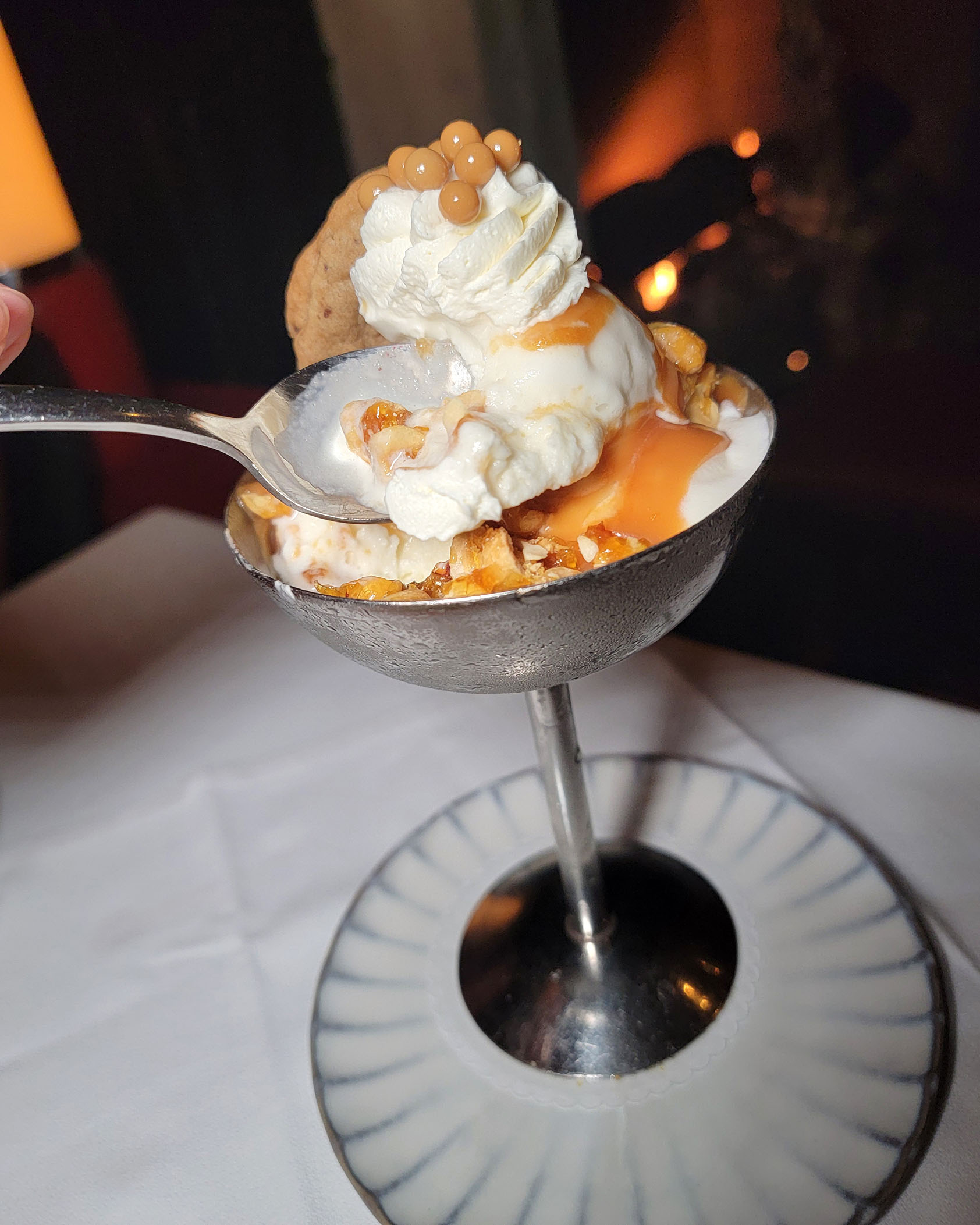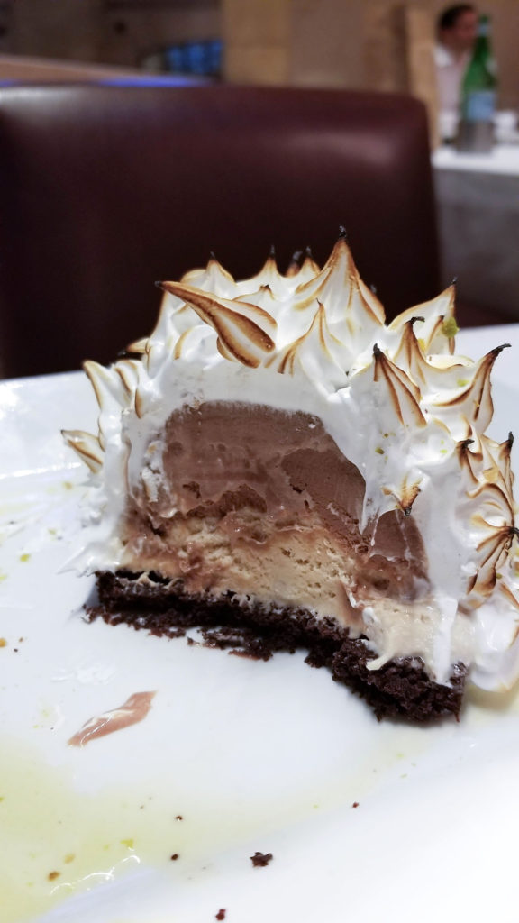 Desserts were on point too. The chocolate fudge brownie with ice cream was slightly more cake-textured than brownie-textured, but the baked Alaska was awesome with the pecan and chocolate ice cream inside, with pistachios as garnish.