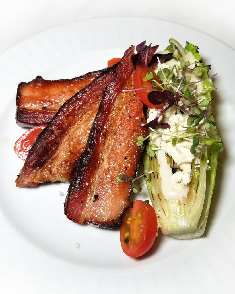 The bacon was okay. I’ve had better, but I thought it was cool that it came out with grilled Romaine, grape tomatoes and dressing. Essentially this is a salad.