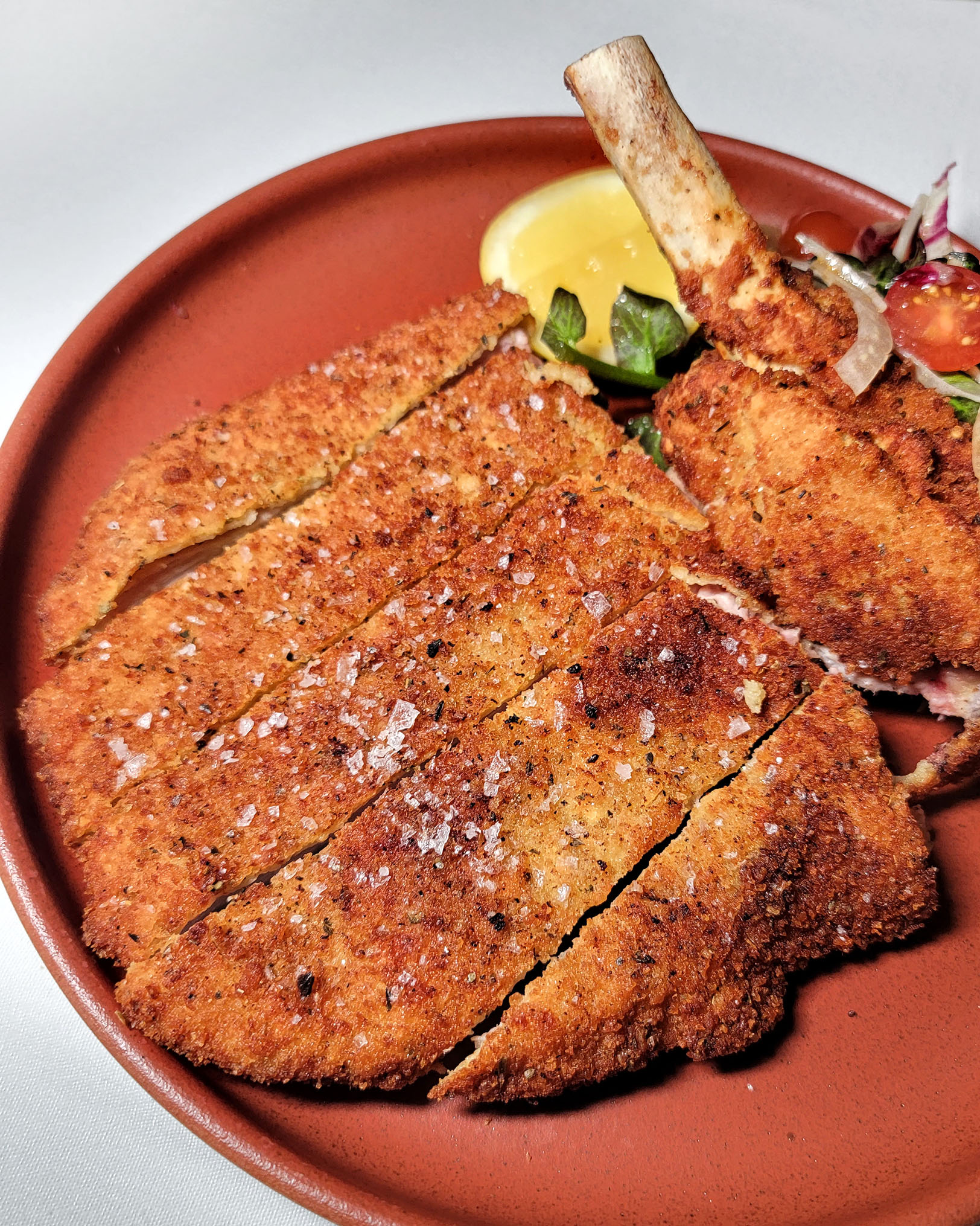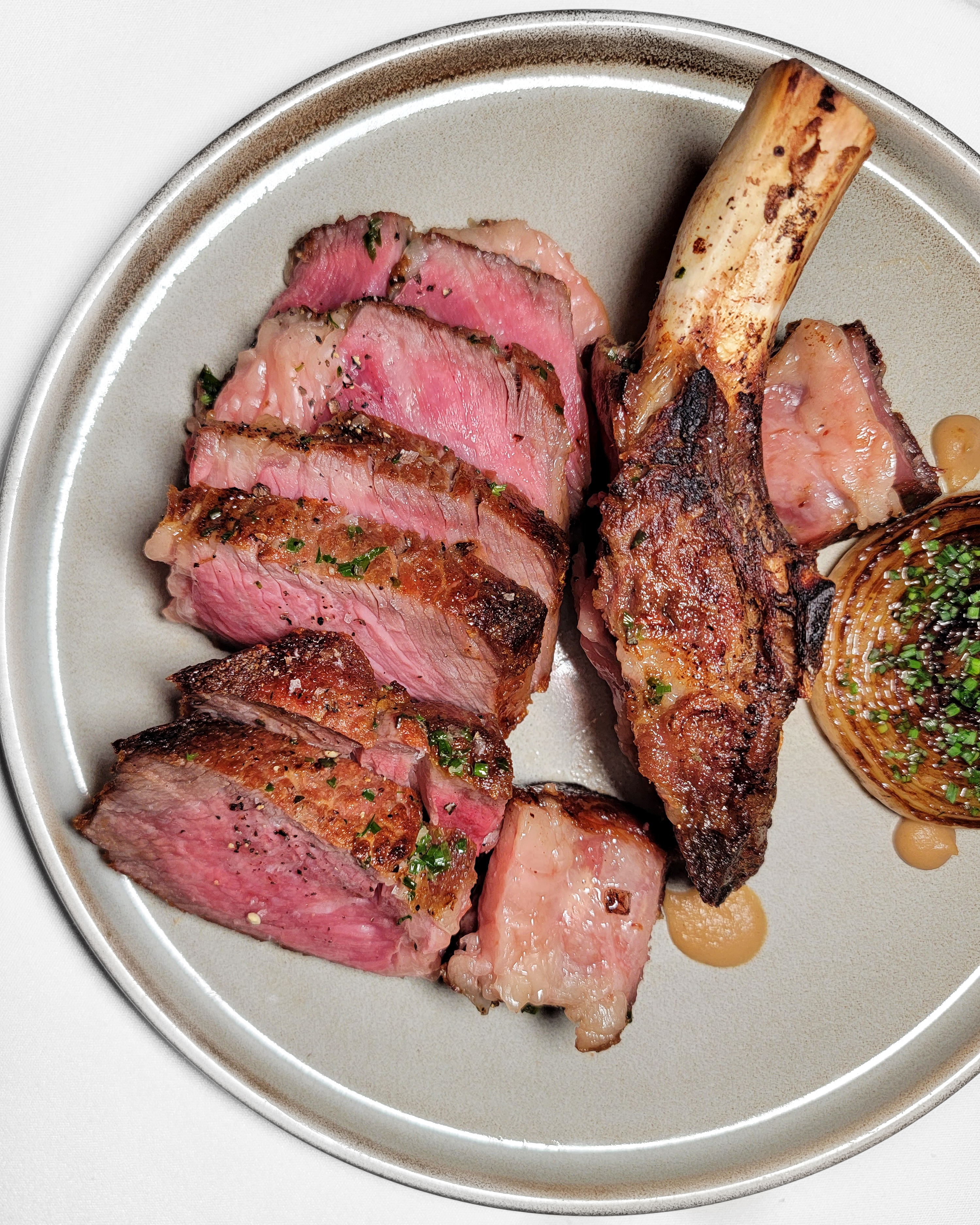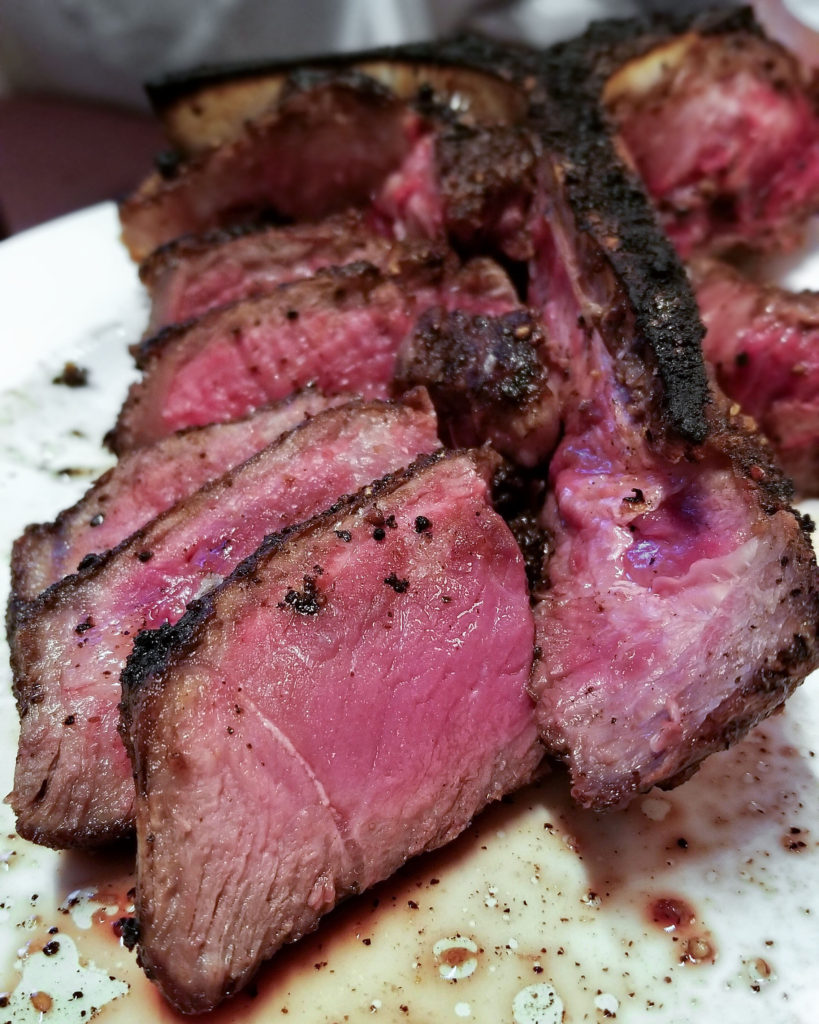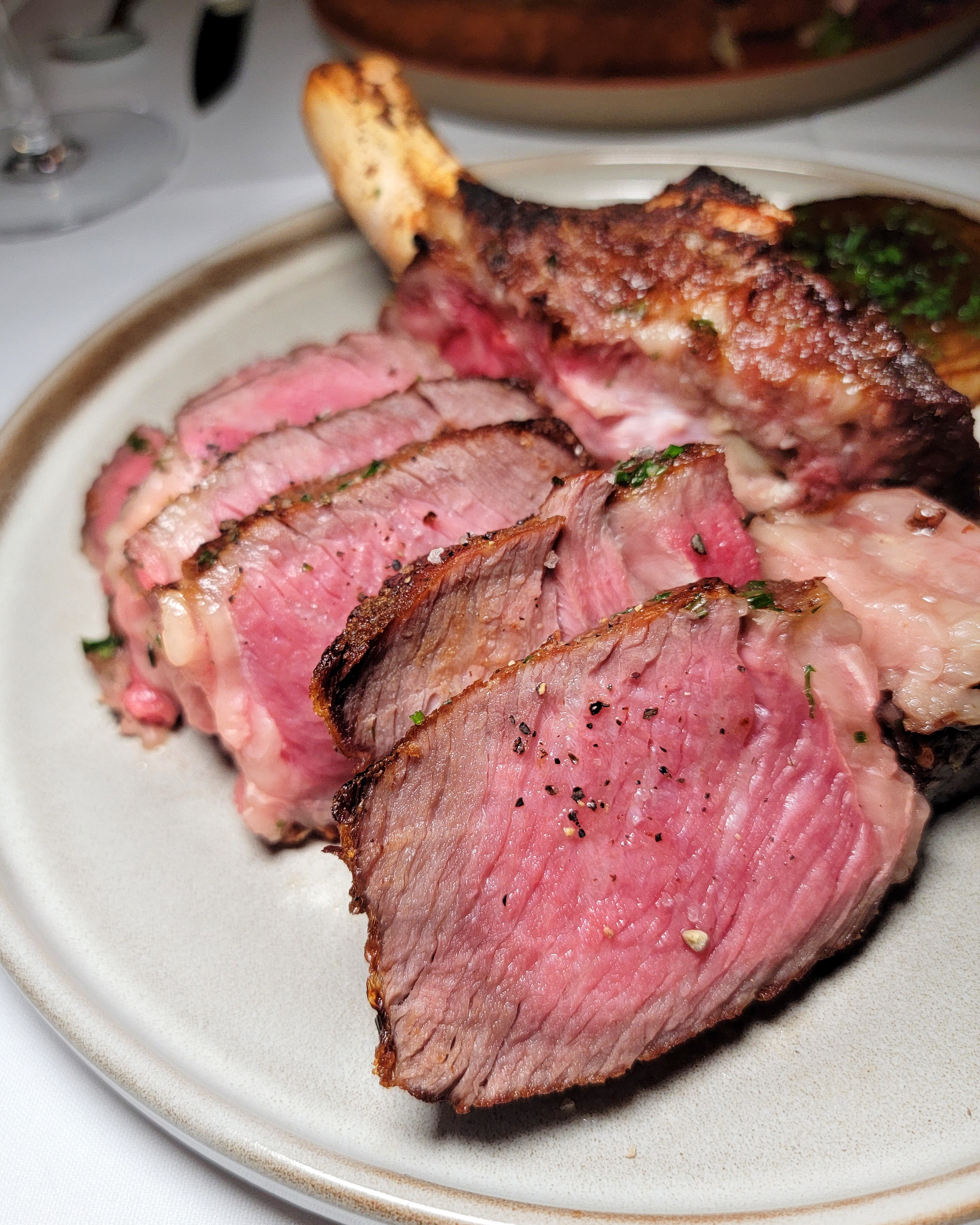 Although it’s not quite on par with Burger & Barrel or Keens, it is a delicious meal. Bone in versions are thicker, for $52, while boneless versions are a little more slim, at $42.