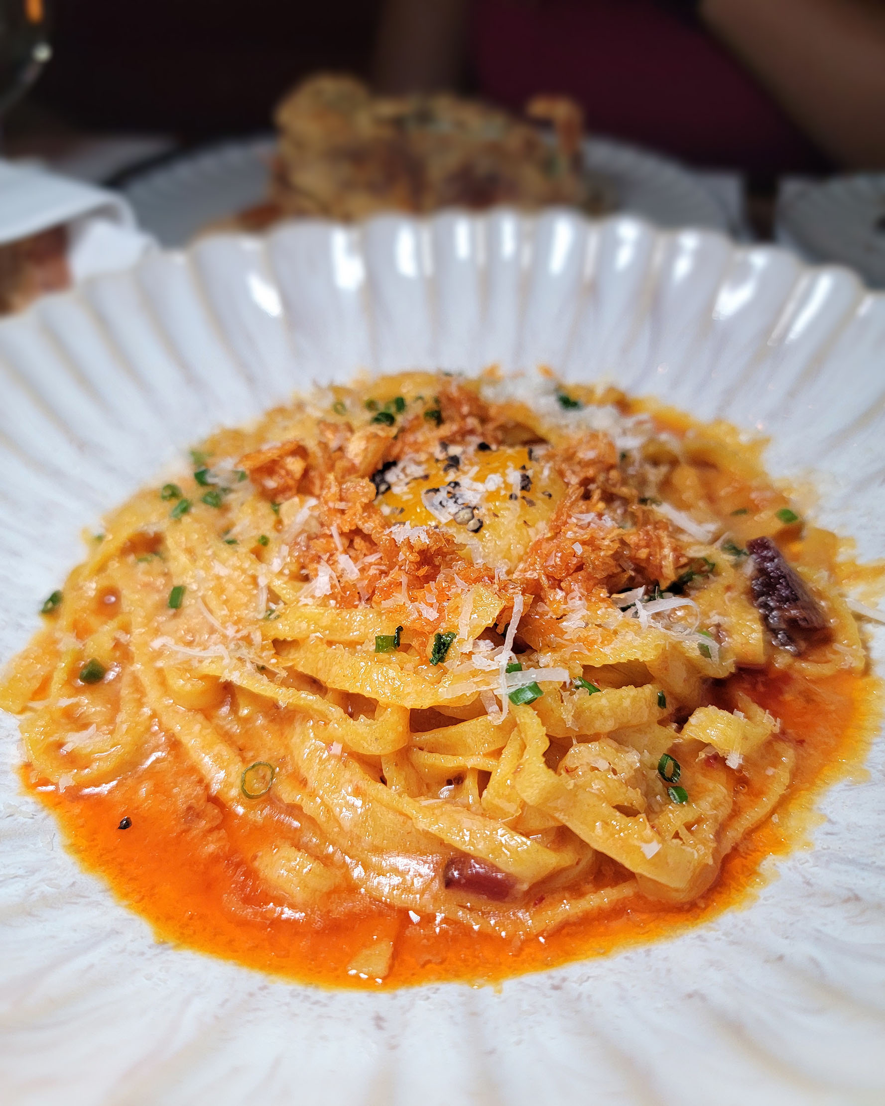 If paying the additional fee isn’t your speed, then go with the rigatoni bolognese:
