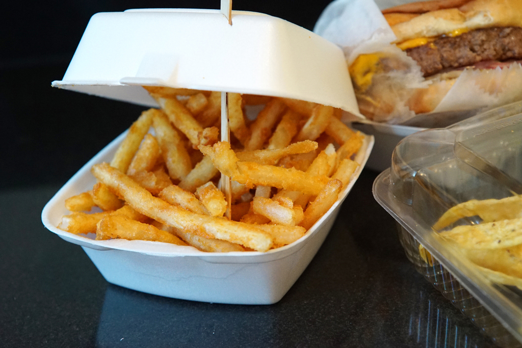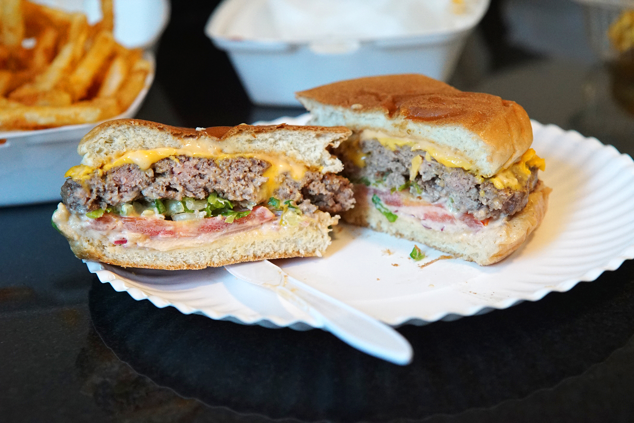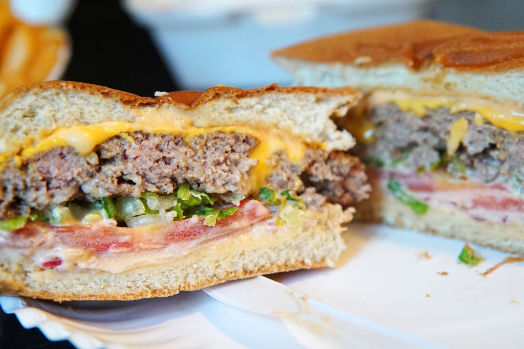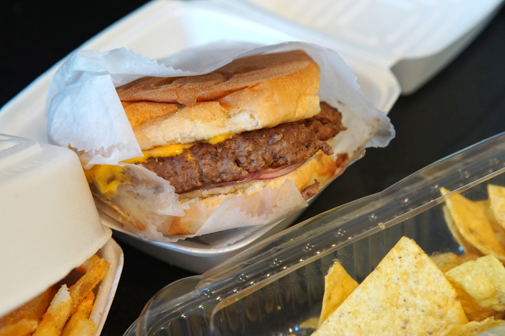 Next item to get: the Charly burger. These things are fucking awesome. No bullshit – 6oz patties grilled to perfection on a nice flavor-filled flat top griddle, and topped with whatever goodness you want; they have everything from a variety of cheeses to onions to mushrooms, etc. They offer single, double, and “grand slam” burger sizes (grand slam = four 6oz patties). On one of our early dates, my wife put down a grand slam burger and fries all by her lonesome. I knew then she was magical. The fries are legit too – they used to be a little greasy, but they did stay crisp and flavorful. NOW they use a battered fry (it used to be a natural type cut), which is a million times better. Crisp, flavorful, and they hold up even when enclosed in a clamshell for a 30 minute subway ride.