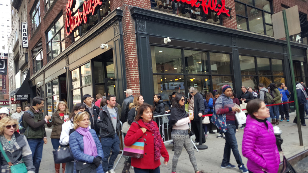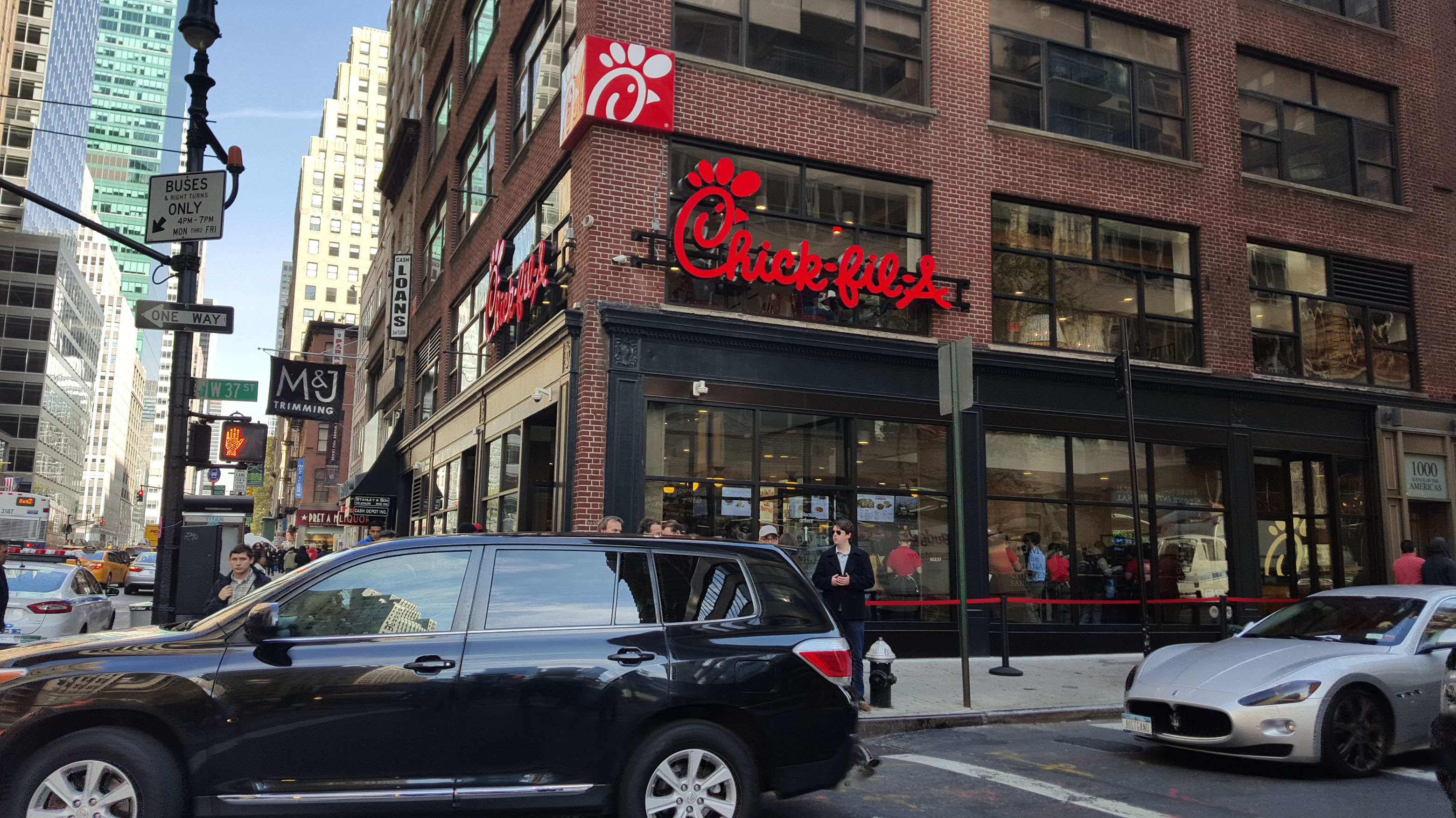 NYC has gone bonkers with the opening of its first official Chick-Fil-A restaurant (not counting the small, kiosk shop in an NYU cafeteria downtown, of course).