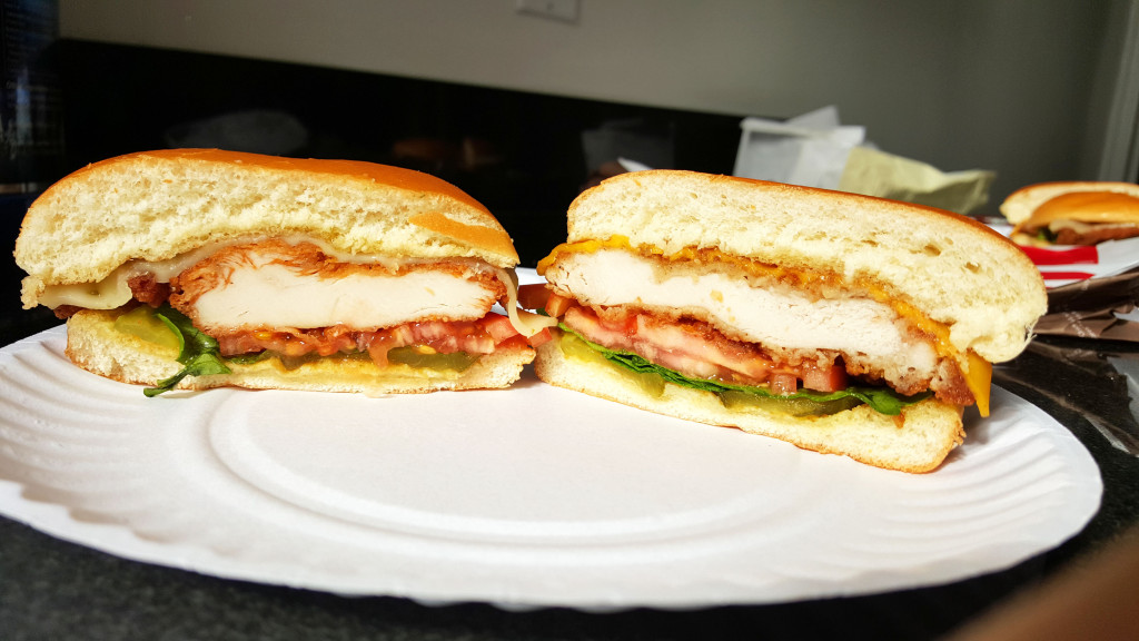As far as fast food goes, this comes in on the upper 75th percentile, I’d say. I’ve had better, but I’ve definitely had worse. The chicken is tender and juicy, but when competing in NYC with the likes of places like Fuku+ for a chicken sandwich, there’s really no choice. Anyway take a look at the inside: