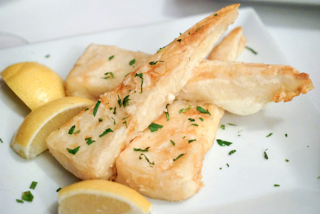 Scallops, shrimp, salmon and whole branzino are on the menu here for entrees, and I assume lobster as well due to the presence of a tank in the entry area. We tried the branzino. It was very simply prepared: roasted and de-boned.