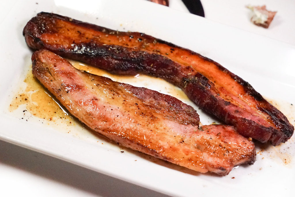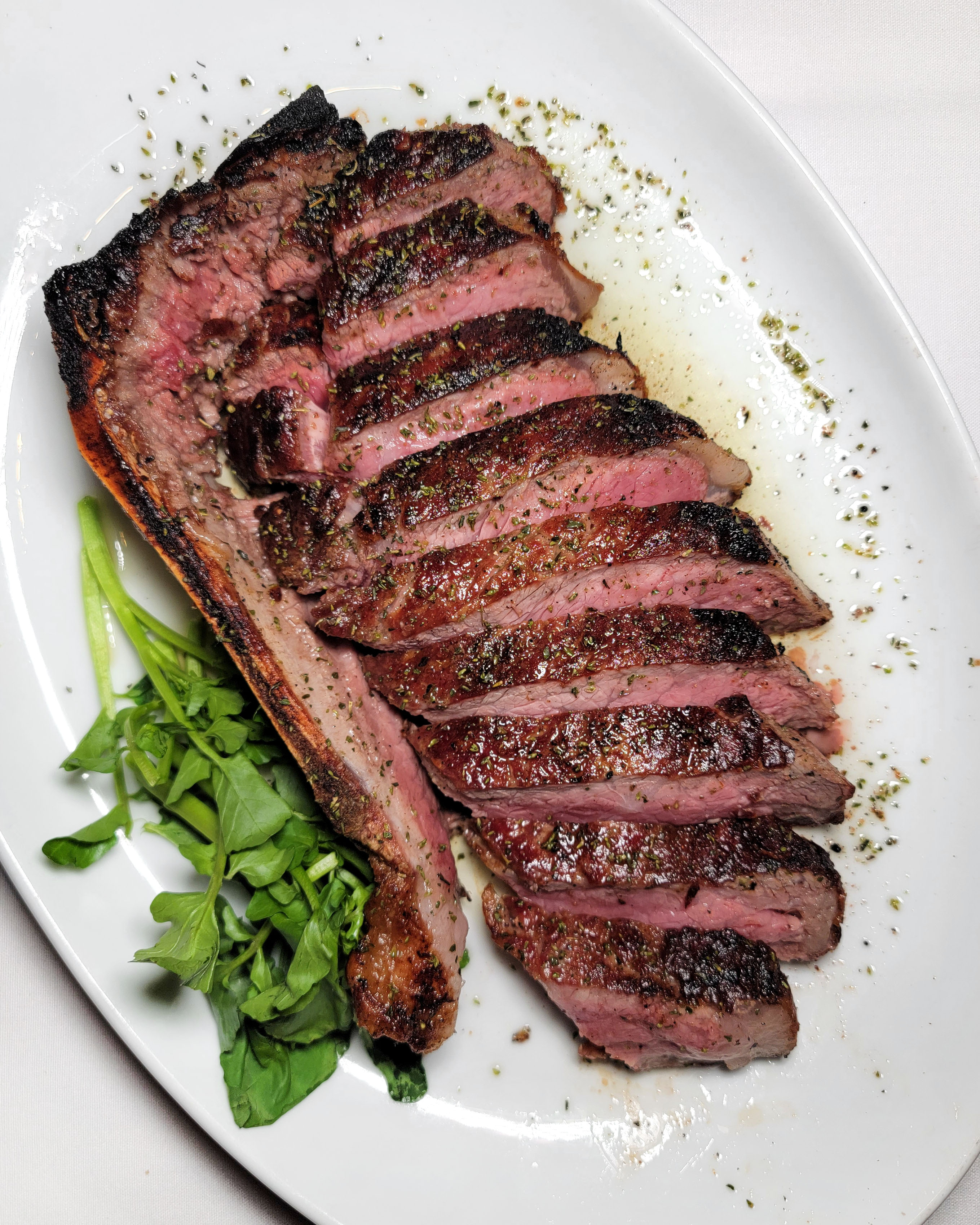 While some parts were over-seasoned, some were also under-seasoned on this porterhouse for two. However, the cook temperature was a perfect medium rare, there was an awesome crust on the outside, and the meat was well rested and juicy. 8/10.