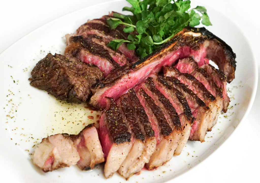 Master Purveyors supplies all the meat for Christo’s, so we are dealing with excellent quality. You can see in the images above that the porterhouse has excellent marbling throughout the cut. Really good quality fat. Everything is aged in house for 21-days, and all the major cuts are covered with some large format options and alternative cuts as well (hanger, skirt, beef rib).