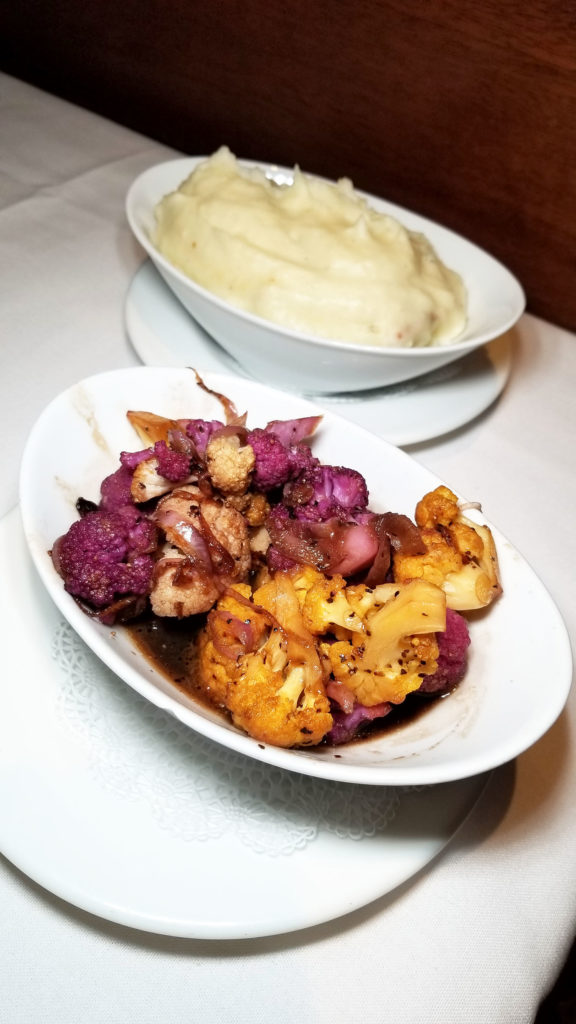 Tri-color cauliflower and blue cheese & bacon mashed:
