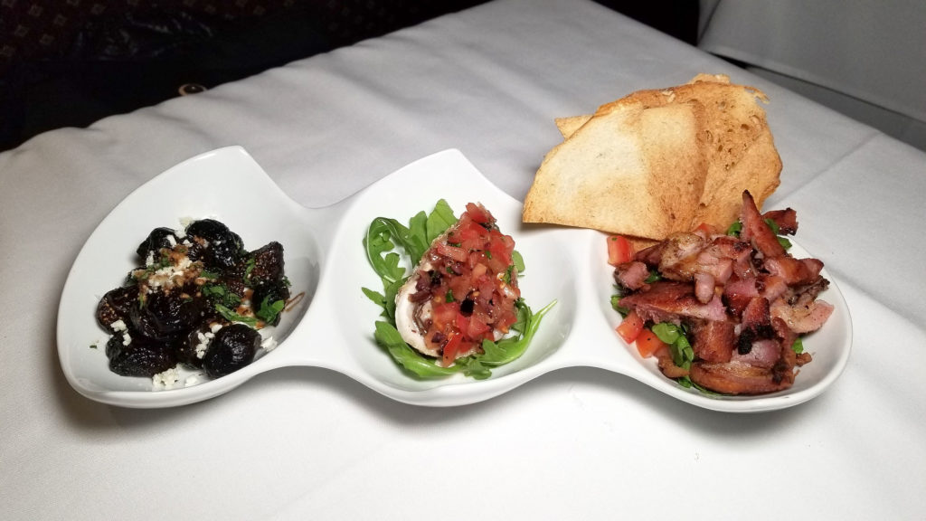 Trio of apps – bacon, grilled oyster, balsamic figs: