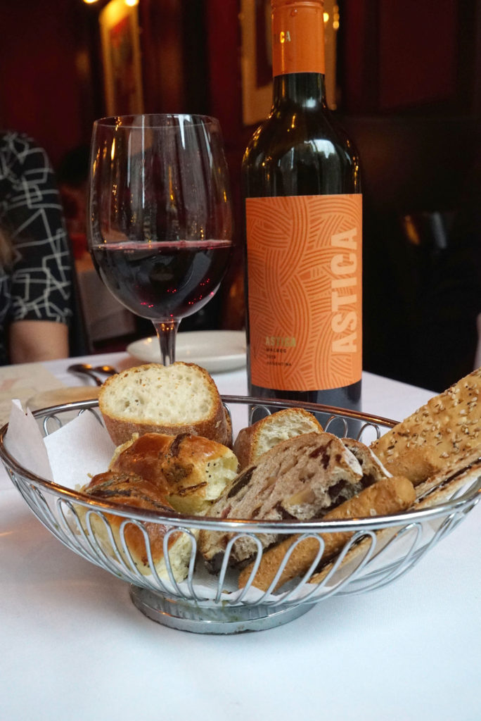 The price was great – $80 for four courses each, plus a bottle of wine (now $99). The quality didn’t quite exceed the value, but I guess they have to draw the line somewhere to distinguish between the bargain menu and their regular menu. Prices for regular items are standard NYC steakhouse prices.