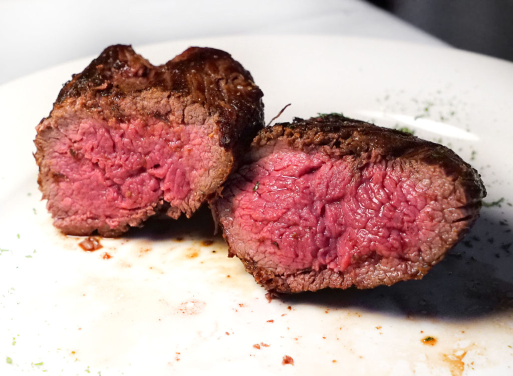 The photos and video make it look very overcooked, but it was just my light shining too hard. It may have been closer to medium than medium rare, but there was plenty of pink to go around.