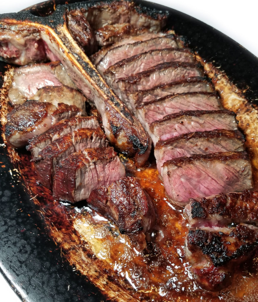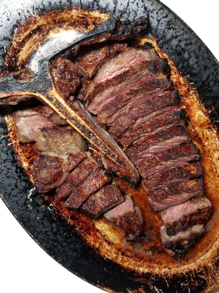 This baby was nearly perfect. I only took a point because the seasoning was a hair too light. Otherwise the strip side had a really great texture, and the filet side was as soft as a baby’s ass.