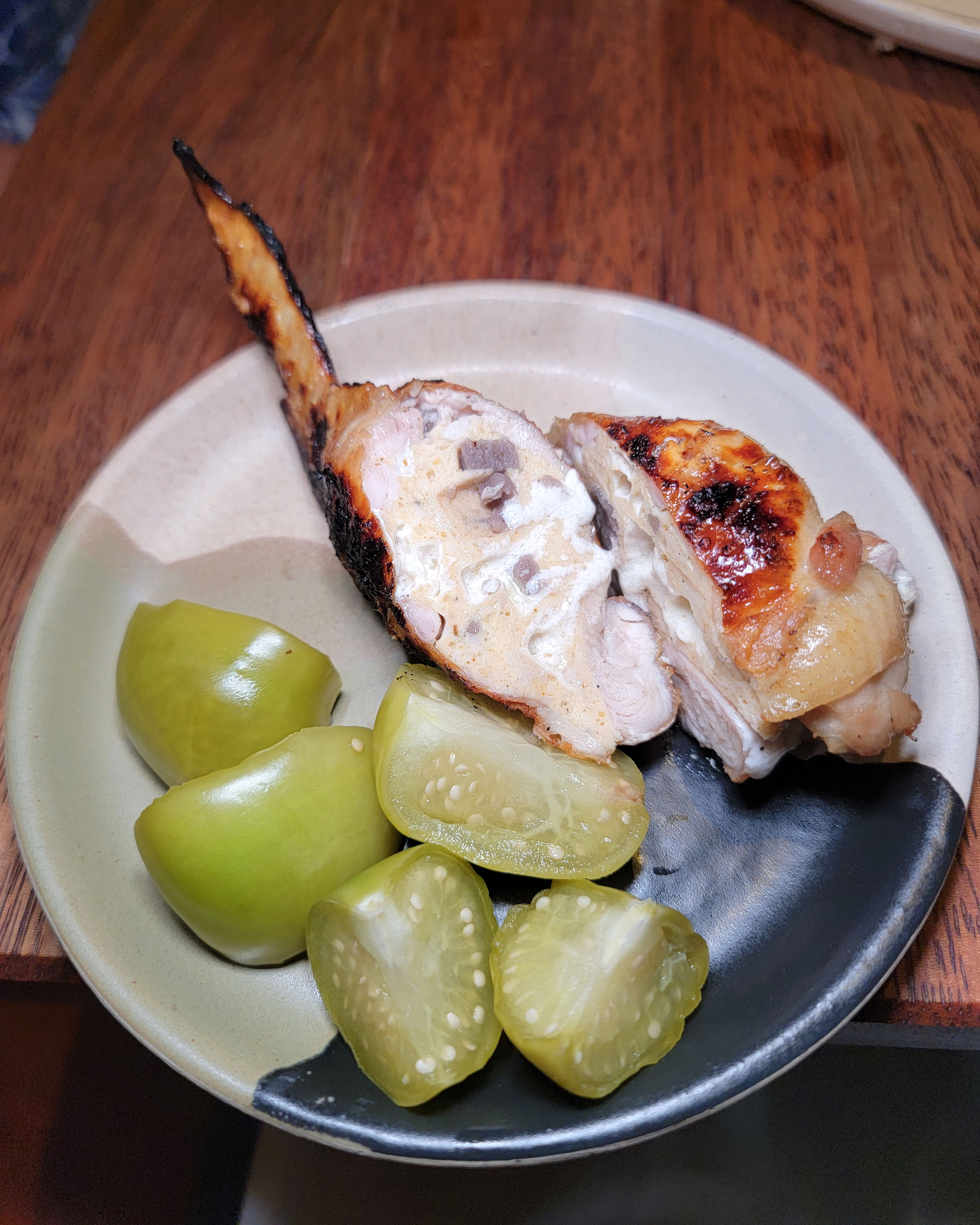 The stuffed wing with pickled tomatillo was a nice tough to go with it, but ultimately it seemed like a lot of extra chef work for little reward on our end. We liked the regular parts of the chicken better.