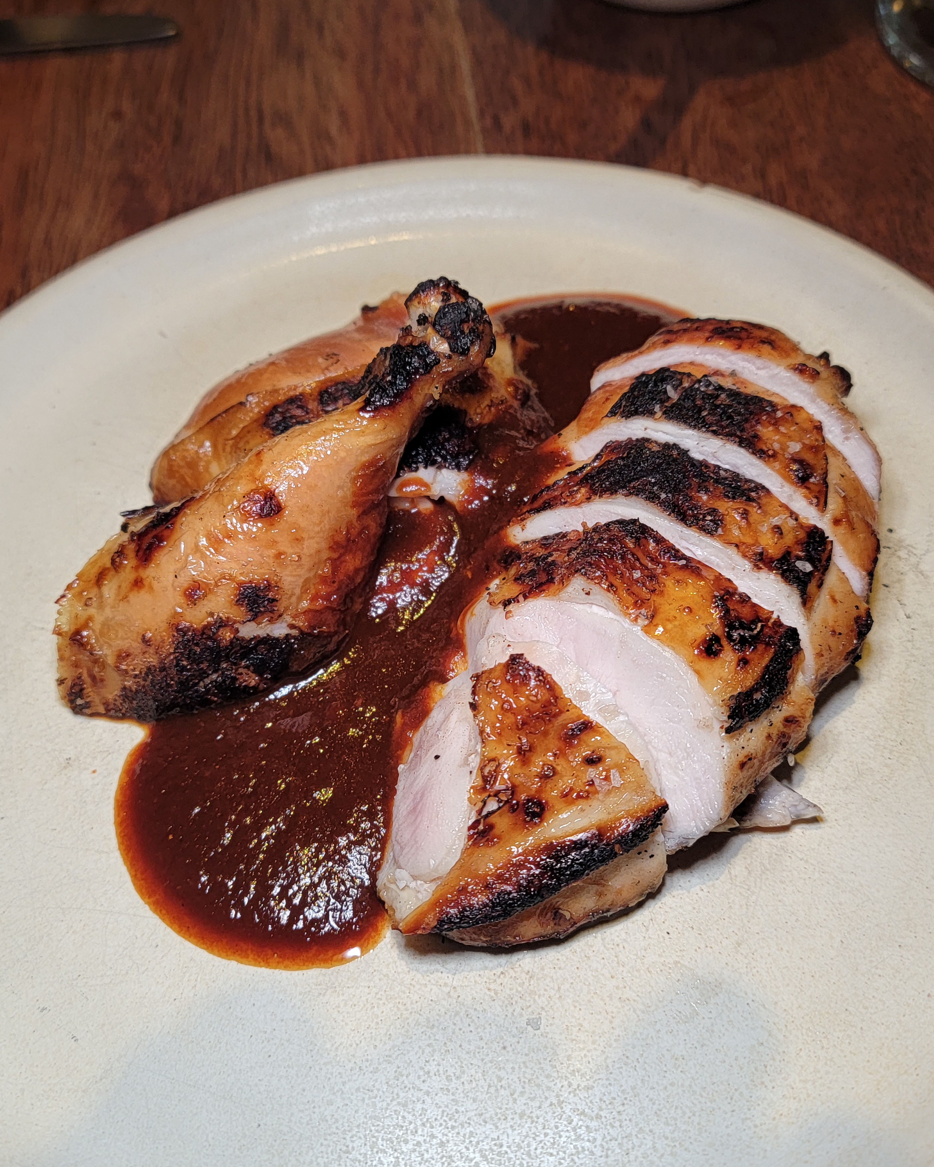 We also had the half chicken, which was really tender and juicy. All the flavor was in the skin and the earthy, spicy sauce.