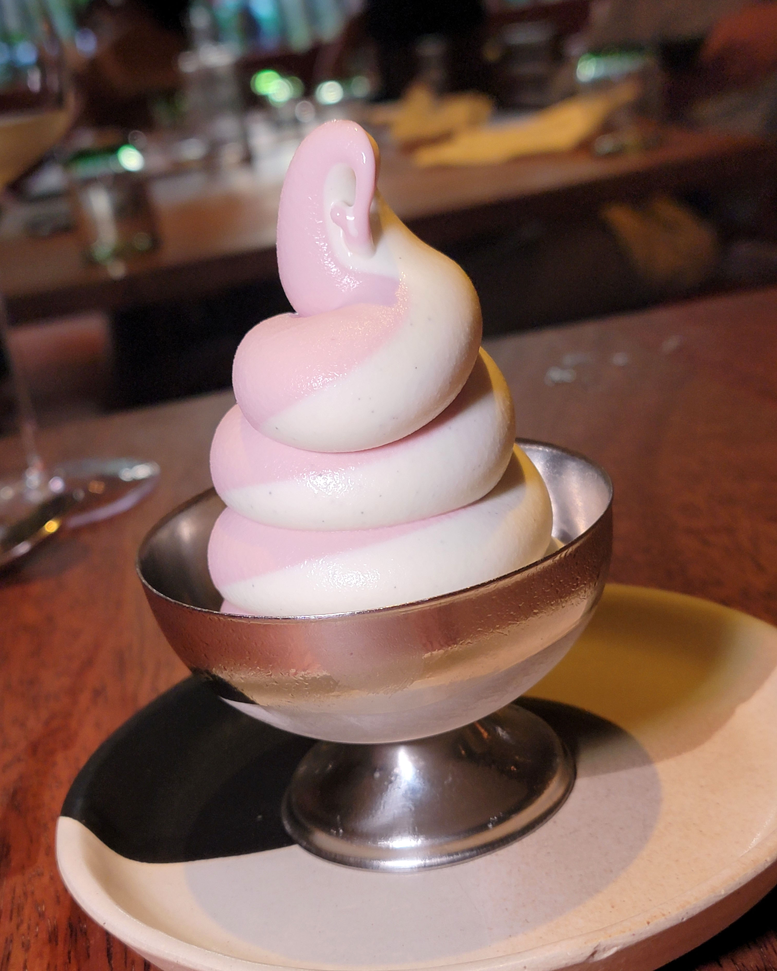 For dessert, we had their raspberry and vanilla soft serve swirl. This his the spot on a hot day.