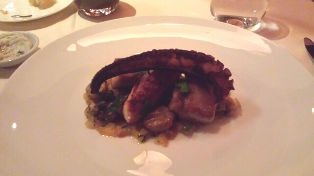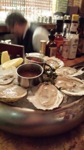 First was half a dozen oysters for only $9 – all from the east coast. Three were from CT (naked cowboy) and the other three from RI (east beach blonde). Both delicious, though I preferred the naked cowboys from CT.