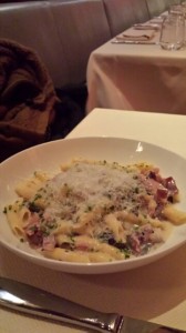 At the table we tried an app sized portion of the garganelli pasta with speck and radicchio. It was creamy and savory – really nice. Slightly salty due to the speck, but I think they managed just fine.
