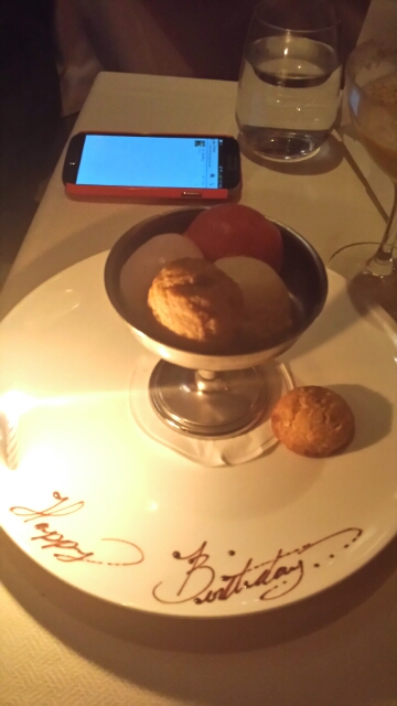 For dessert, we tried a trio of sorbets: blood orange, grapefruit campari, and pear. Each tasted very much like the fruit, but a bit too bitter on the back end for the grapefruit.