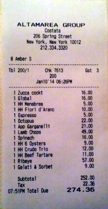 We had a gift card AND we took advantage of some happy hour pricing at the bar, so we did well. below is the bill before knocking off the gift card money. As you can see we ordered a lot of shit, and we were not charged for that mistaken bone-in strip.