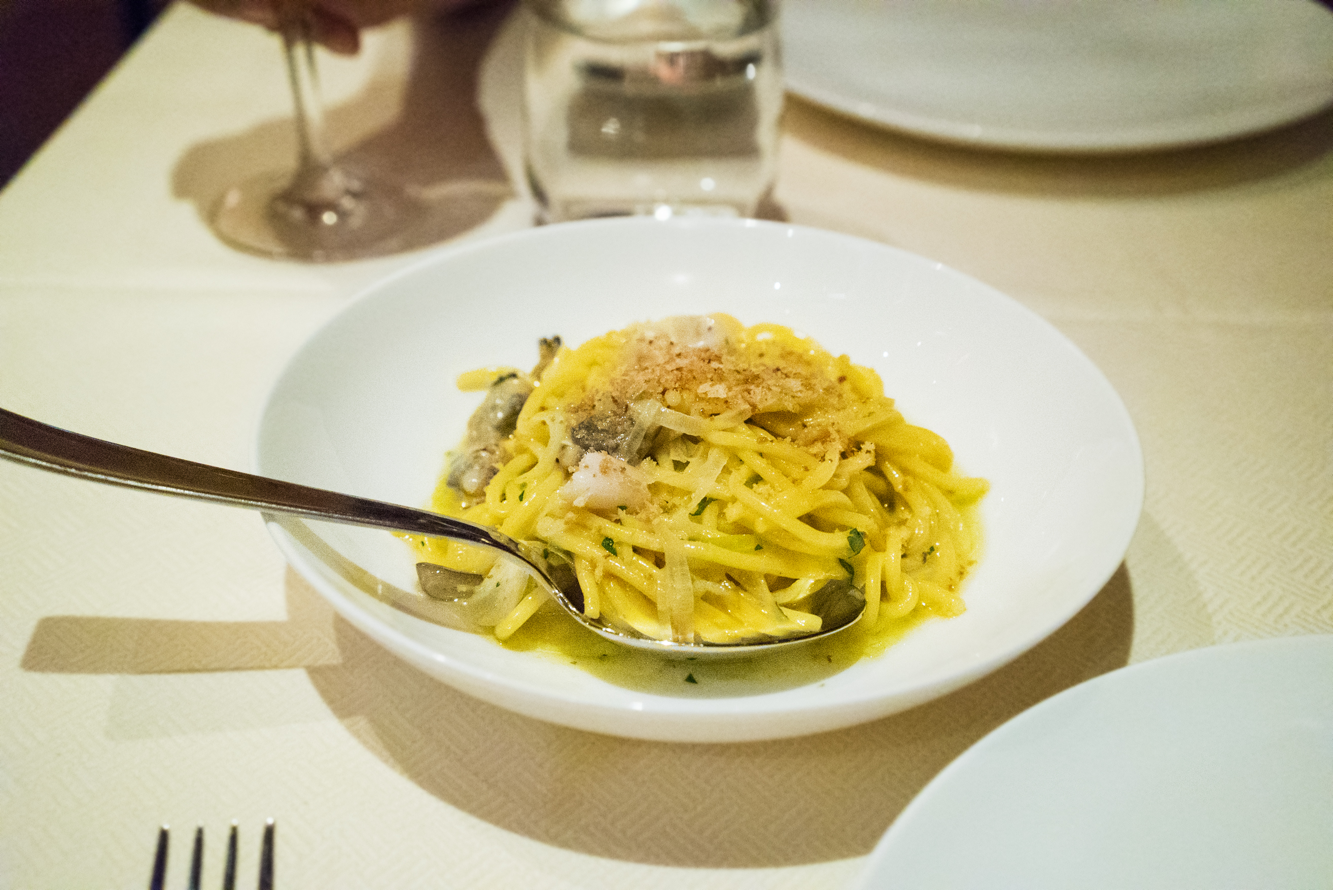 We also had an app sized bowl of spaghetti with clams (Little Necks and razors) in a garlicky butter sauce: