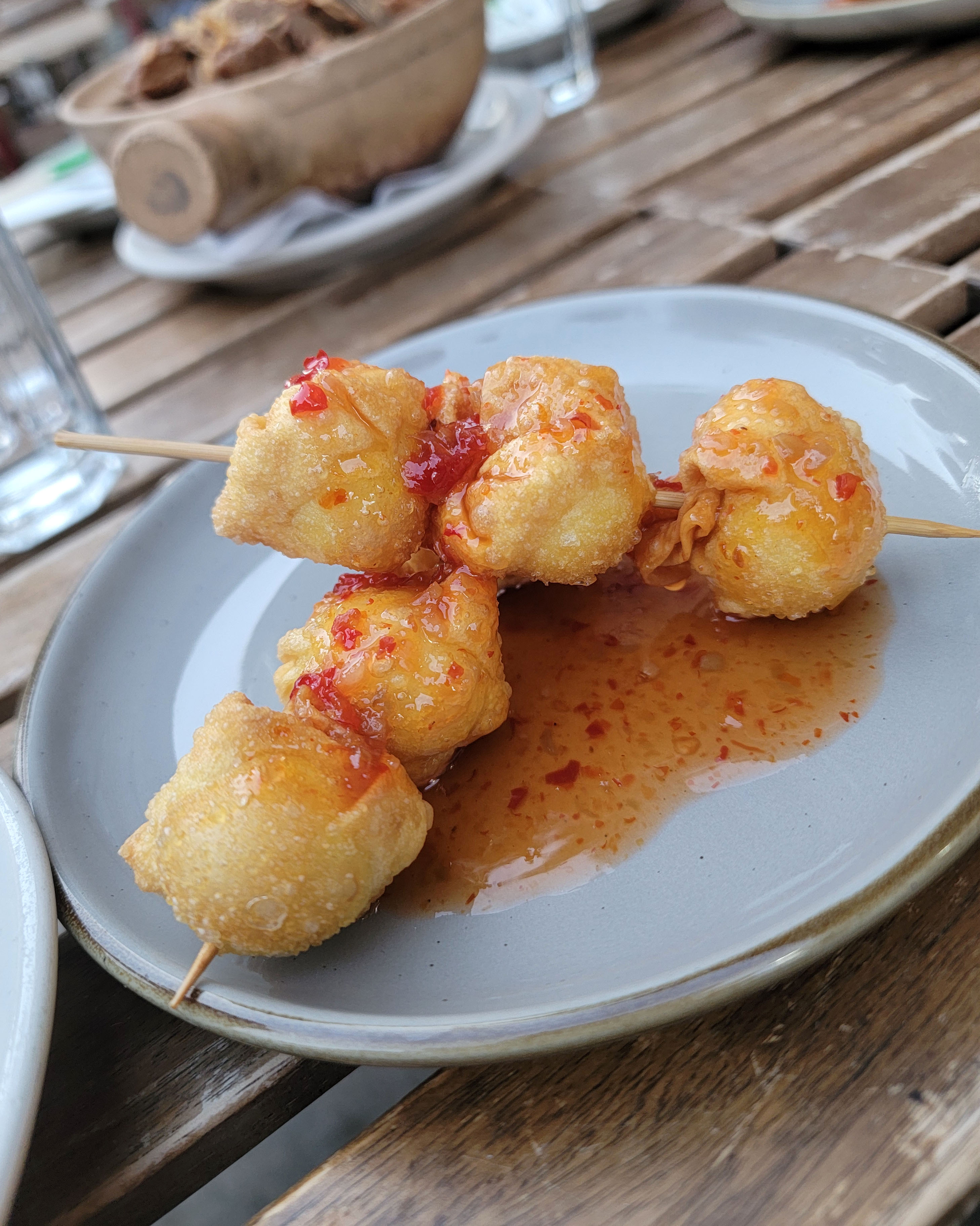 The quail egg fried wontons were unique. I would skip on the sweet chili sauce.