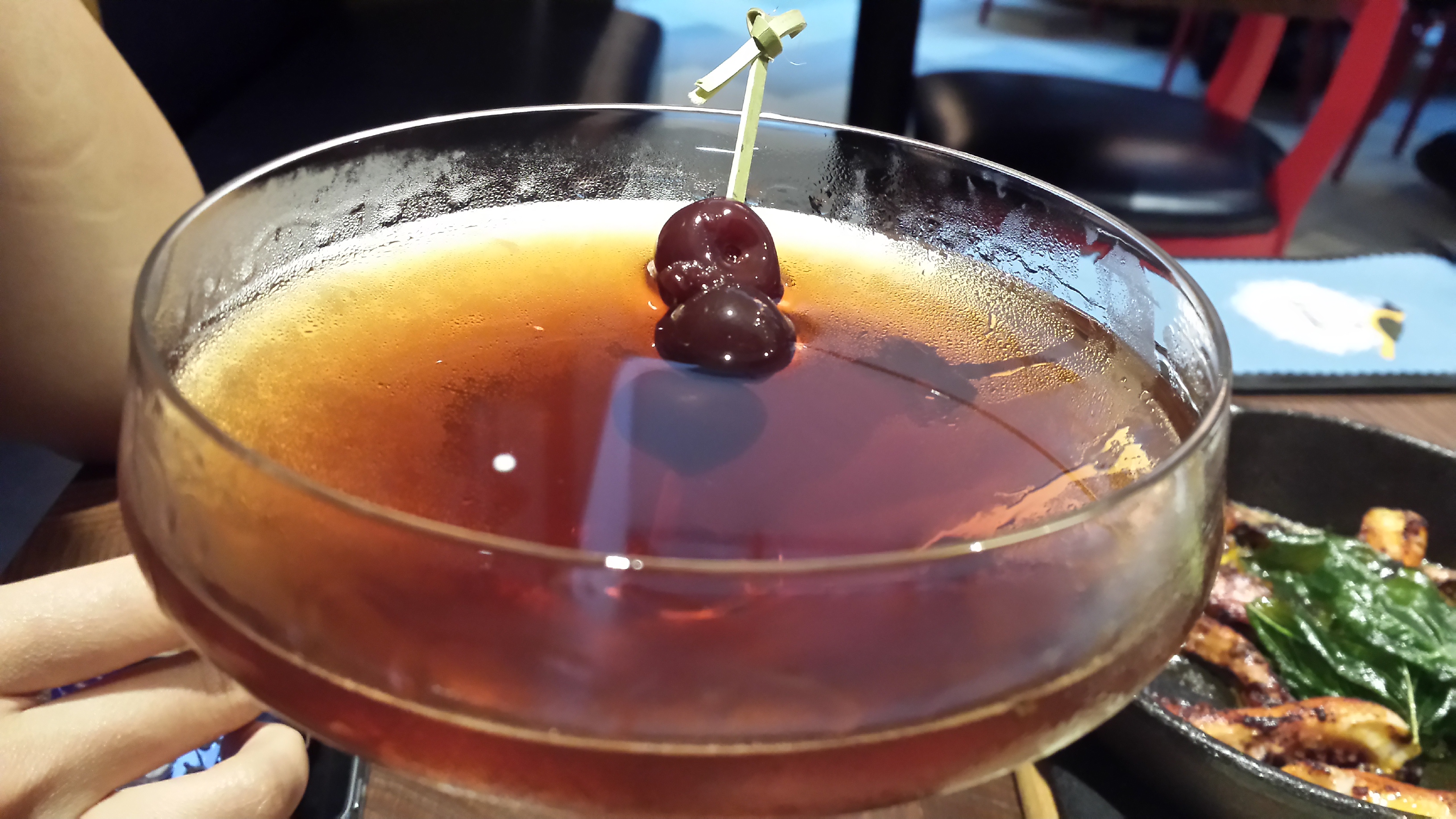 My wife had the “antica Manhattan,” which was made with buffalo trace bourbon, antica carpano, maple syrup, bitters and brandied cherry. It was excellent, except for the fact that later on during the meal we found a gnat floating belly up in it. Doh!