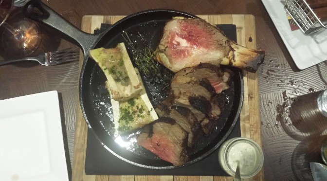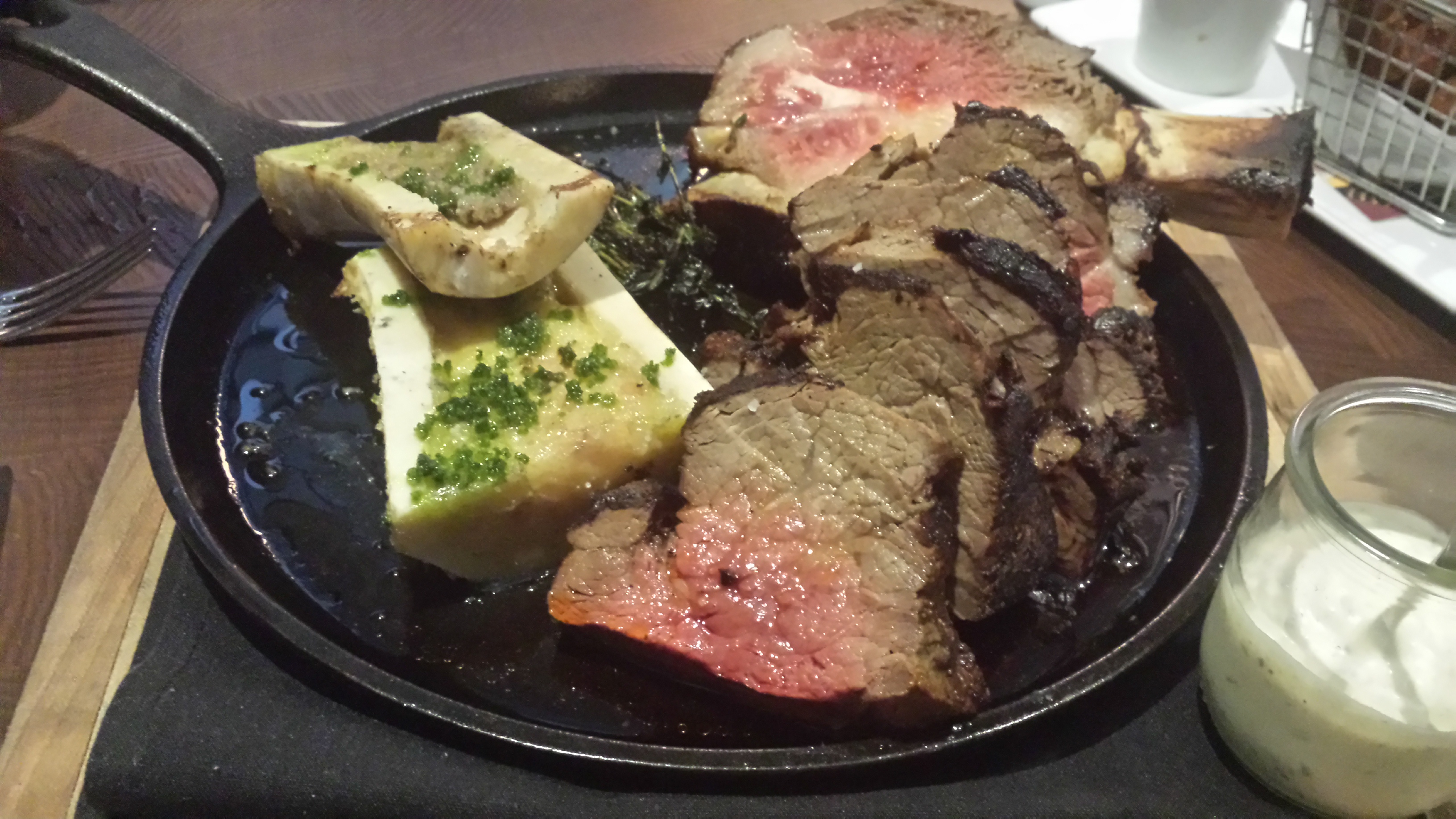 So now for the big fucker. The Bronx filet for two, with bone marrow. The presentation is gorgeous, isn’t it?