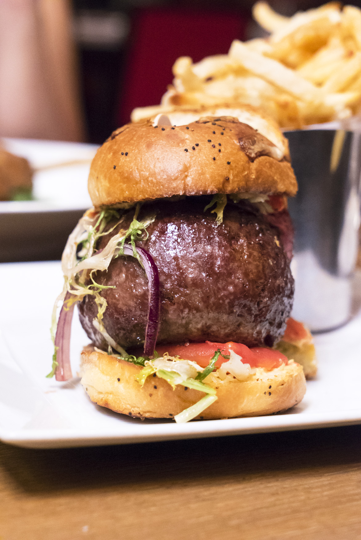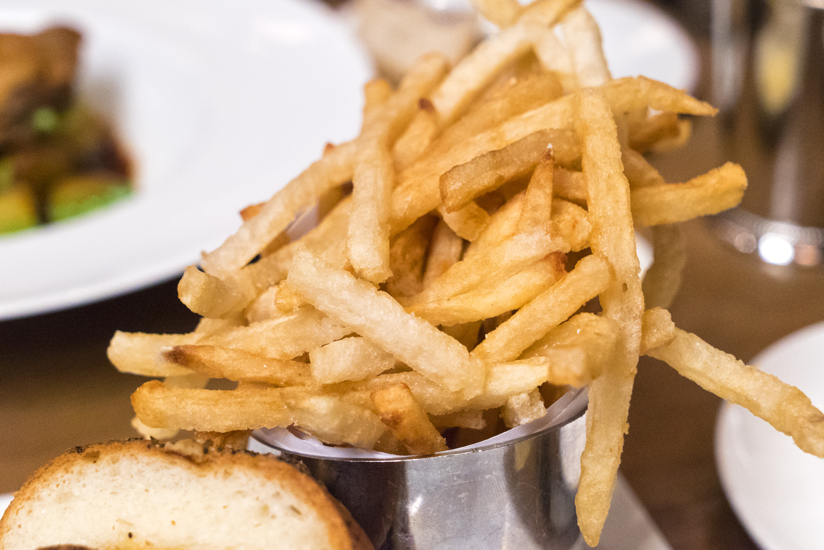I know what you’re thinking… I know, I know… NO CHEESE! and SUPER THICK! As you guys have probably figured out from reading my other burger reviews, I am a simple man when it comes to burgers. Potato bun, a few basic crunch-element toppings, a not-so-thick patty, and good old fashioned American cheese. That being the case, you’d think I would absolutely despise this burger. I loved it, and I think the reason is because I think of it as something other than a burger. This is an entree, not a sandwich. It’s a huge meatball between two pieces of onion, parmesan and potato bread. I ate half with my hands, and the other half with a fork and knife. The side and shape are just unwieldy for a hand-held sandwich. And the lack of cheese was not really an issue, given how juicy, tender and full of flavor all the other elements were in this burger.
