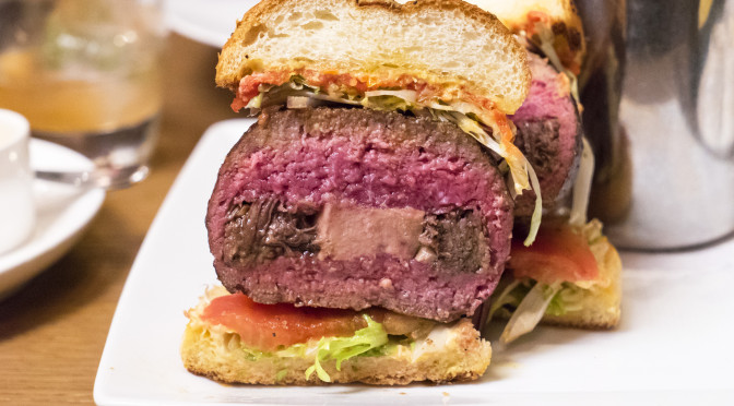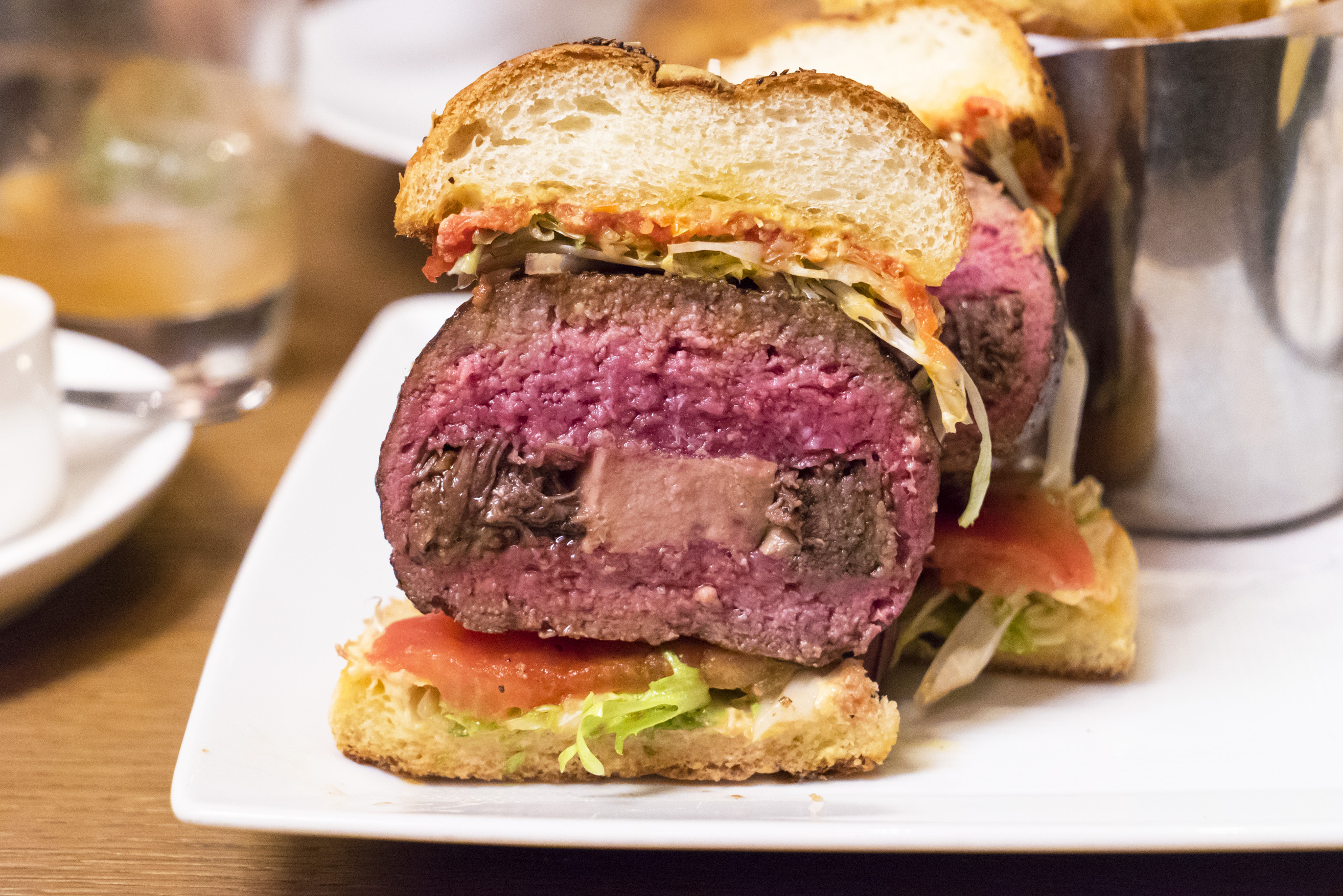 Anyway take a look at this fucker. It comes pre-sliced. Inside is foie gras and braised short rib.