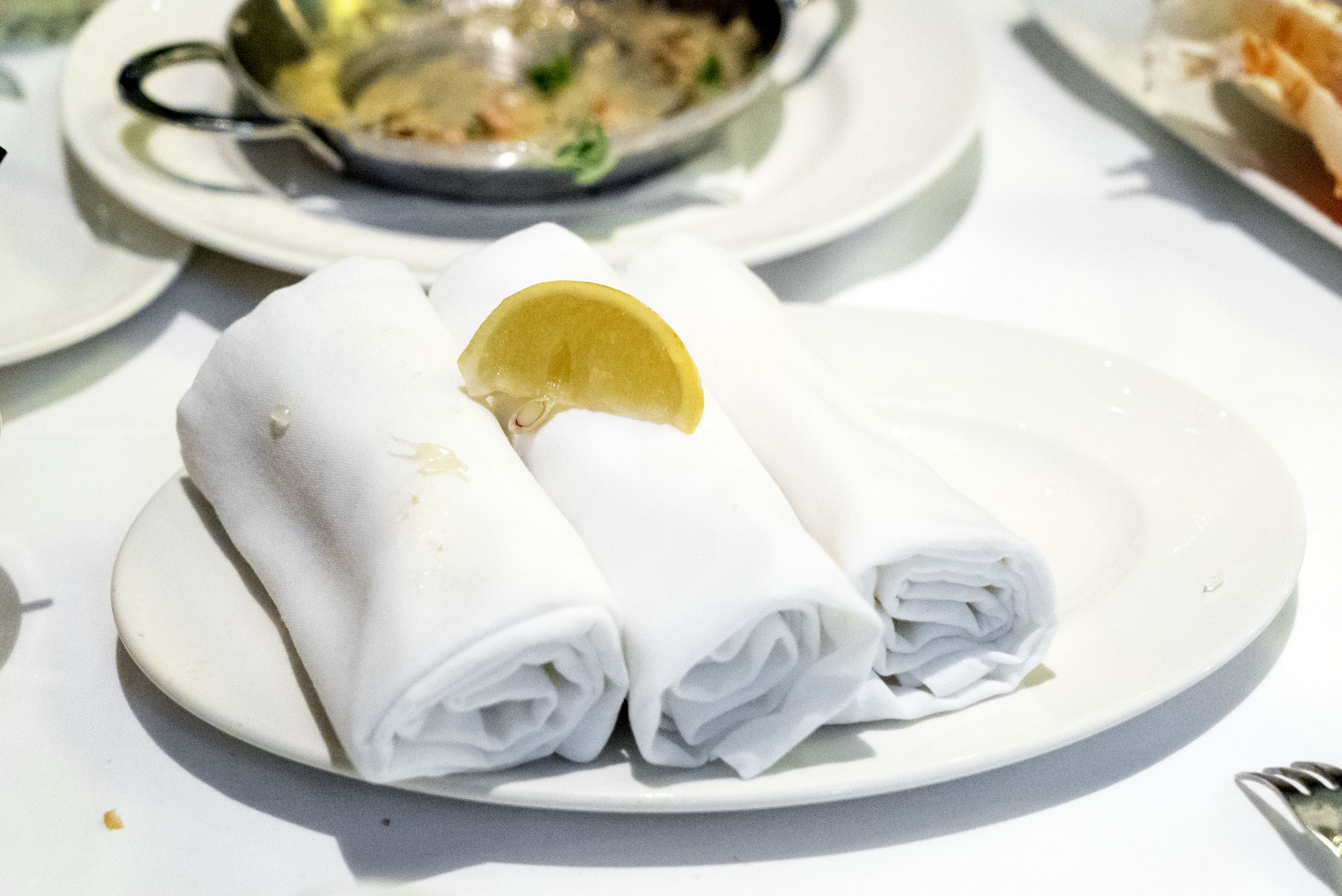 After the crab legs, our awesome waiter Luke brought out some hot towels and a lemon wedge to clean up from handling the shells.