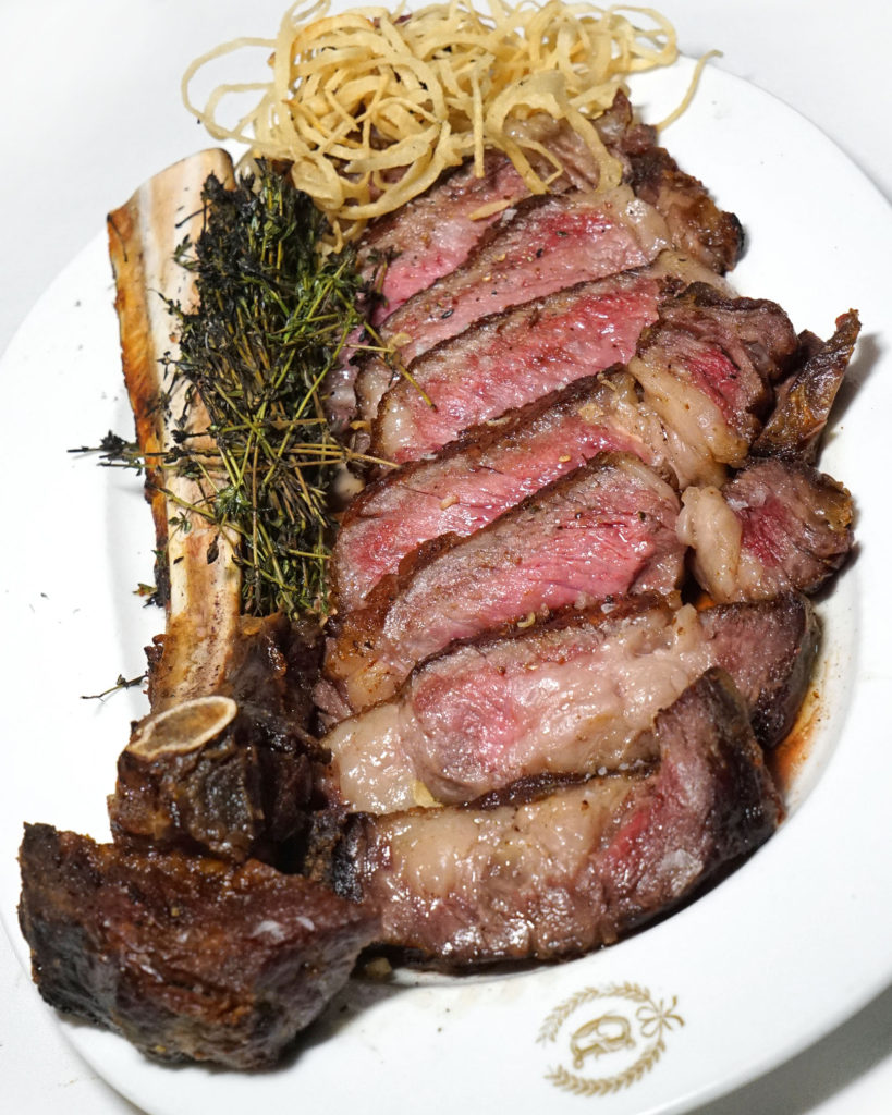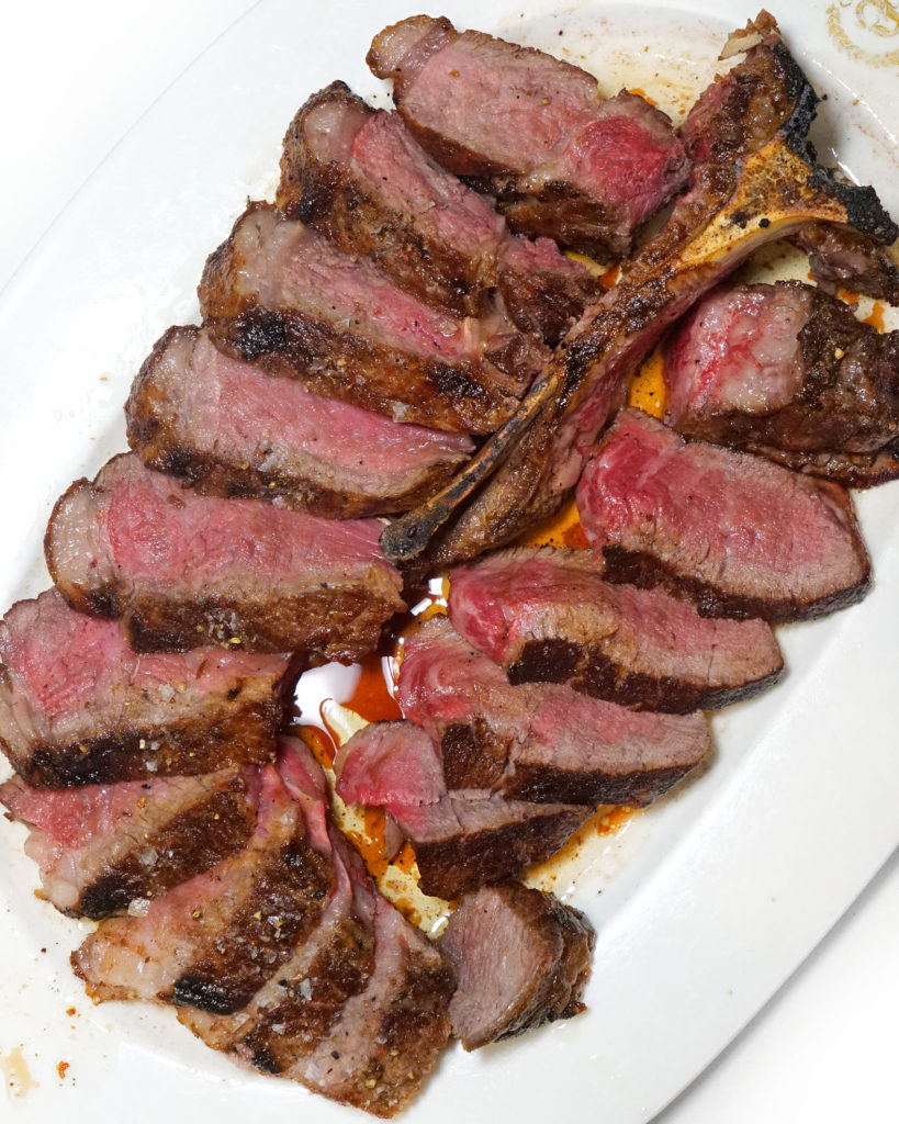 We also tried the porterhouse for two and the tomahawk rib eye for two. Both of these are about 8/10. There was some slight overcooking here, but the flavor was still nice from the 28-days of dry-aging. On average, though, when you take into account the great signature Delmonico cut, strip and filet options (which I already reviewed way back), the 10 score is solid and reliable. My favorite of all the cuts I’ve tried, though, is that rib eye above. Insane. Anyway, here are some shots of the porterhouse and tomahawk for two: