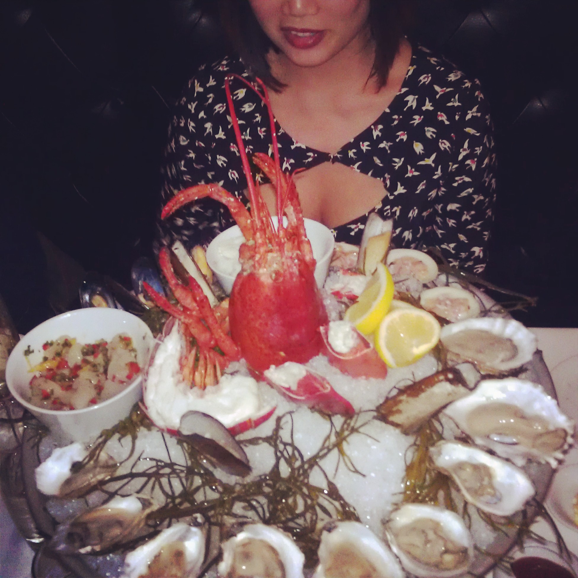Prices here range from upper $40s to mid-$50s. I thought my steak was a little overpriced at $56, but not a deterrent. If I go back, I will most likely order the regular ribeye or try some other cuts and save on cash in the process. The seafood platter here is an incredible buy. For $49 you get so much shit from the sea – awesome. Check out the full monetary damage below.