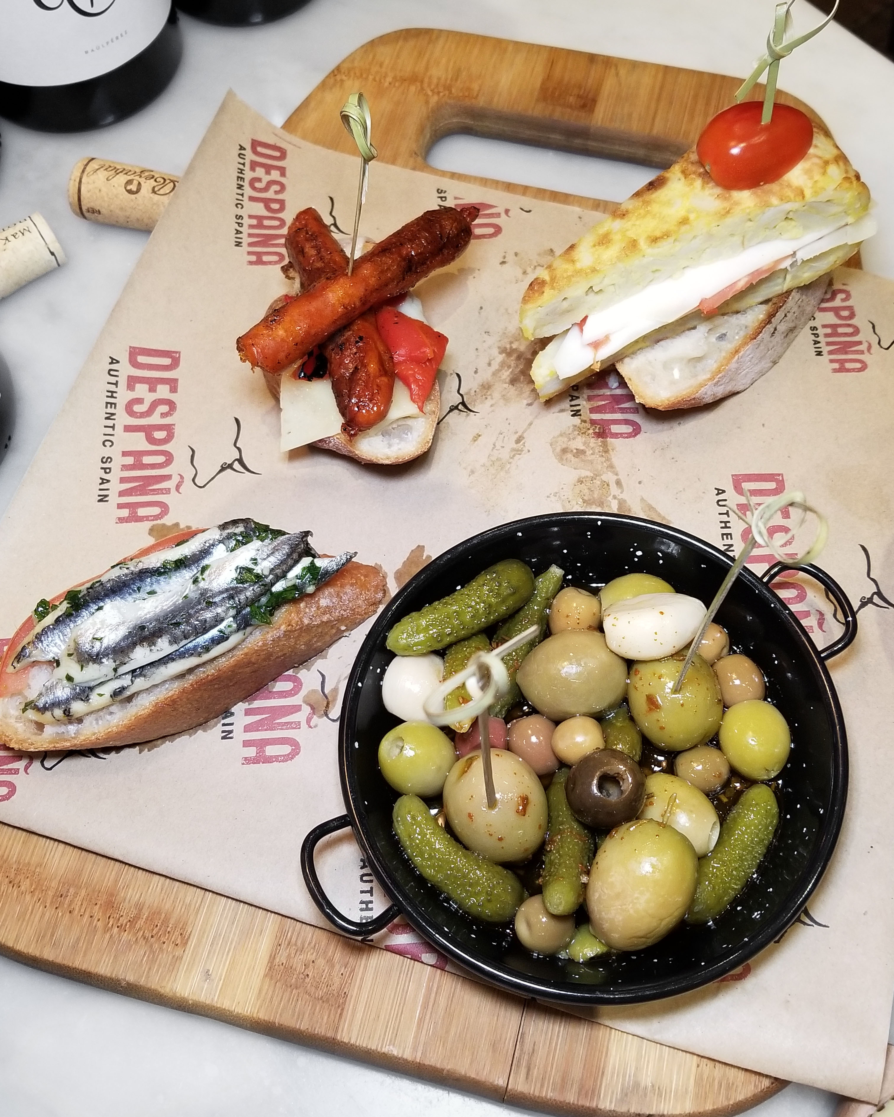 Despana is a little wine shop, gourmet Spanish grocery, and tapas/pintxos bar in Soho, all rolled into one. My wife won a wine tasting here in a silent auction, so last night we went in to give it a shot.