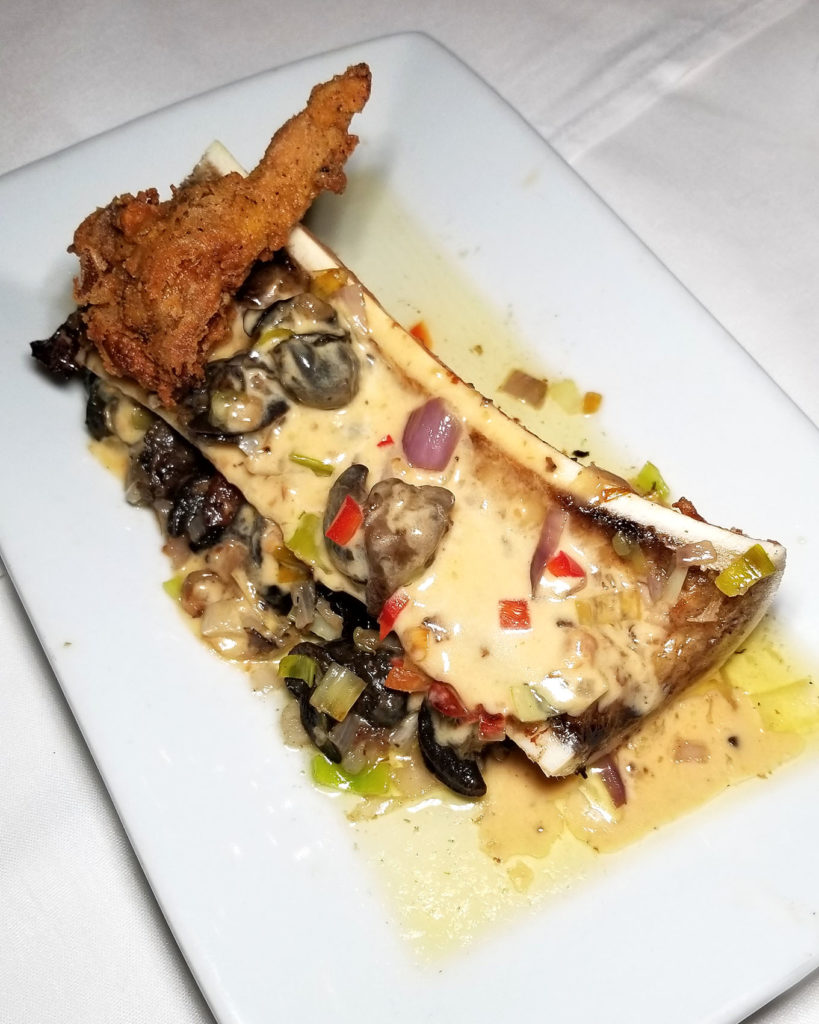 This was fucking exceptional. It was easily one of the best appetizers I’ve ever had. Perfectly cooked escargot swimming in a spicy, buttery marrow sauce… Fuck yeah. It was even garnished with a crispy fried oyster for good measure.